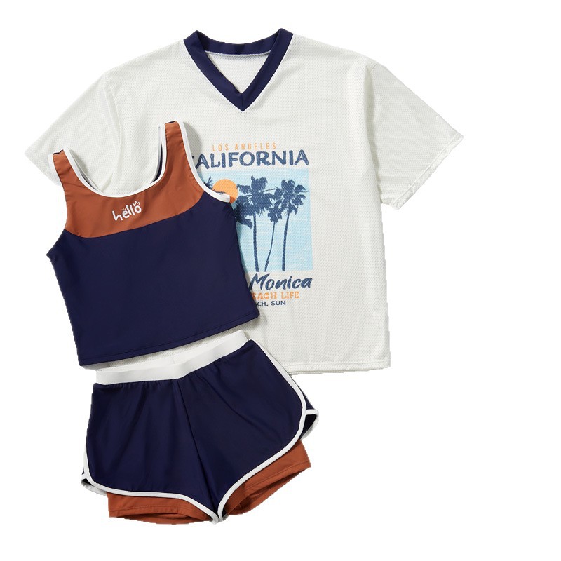 儿童泳衣女海边三件套分体泳衣女孩中大童速干防晒泳装度假泳衣