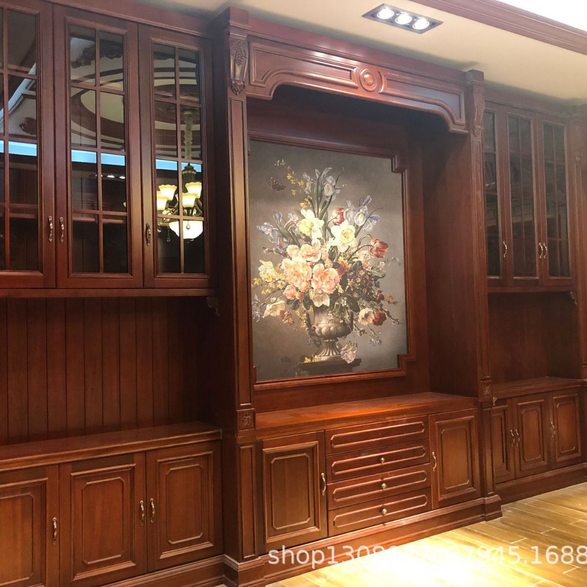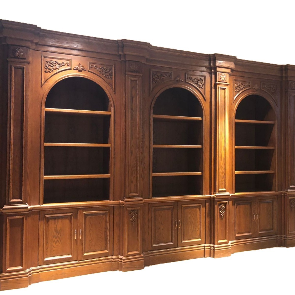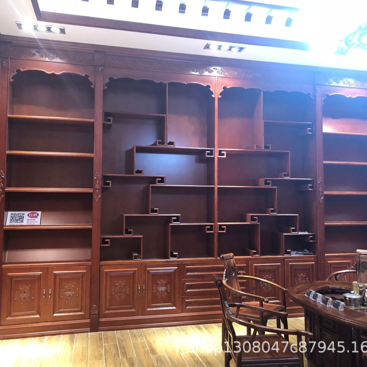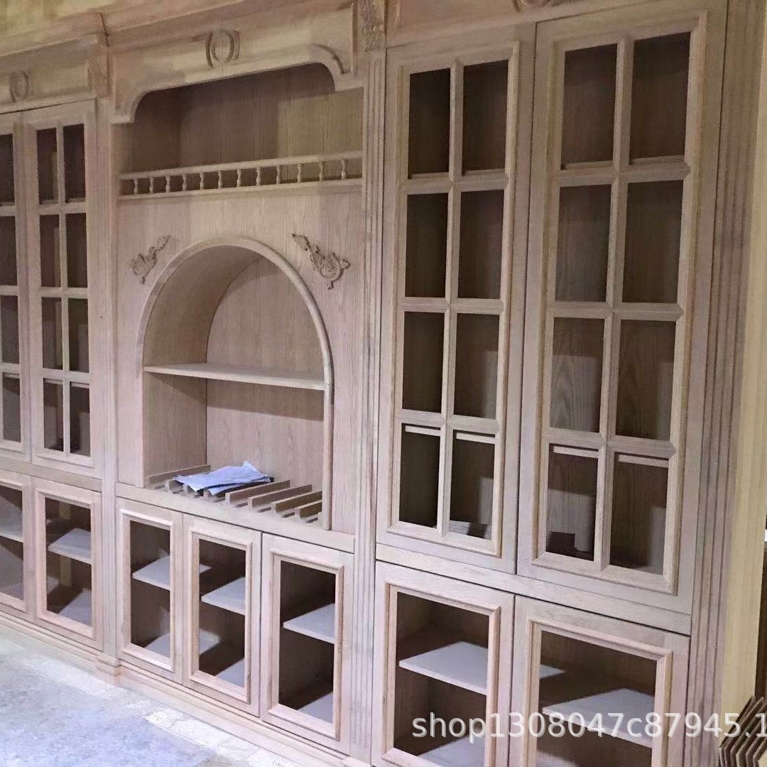 展示柜 别墅书房书架 实木雕花书柜 实木全手工制作书柜免费设计