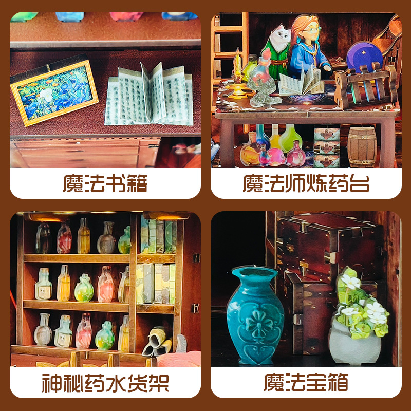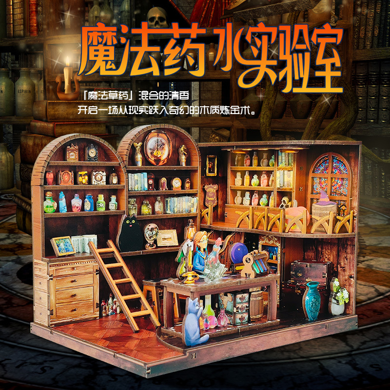 魔法药水实验室木质小屋微缩场景3D拼图手工拼装模型儿童益智玩具