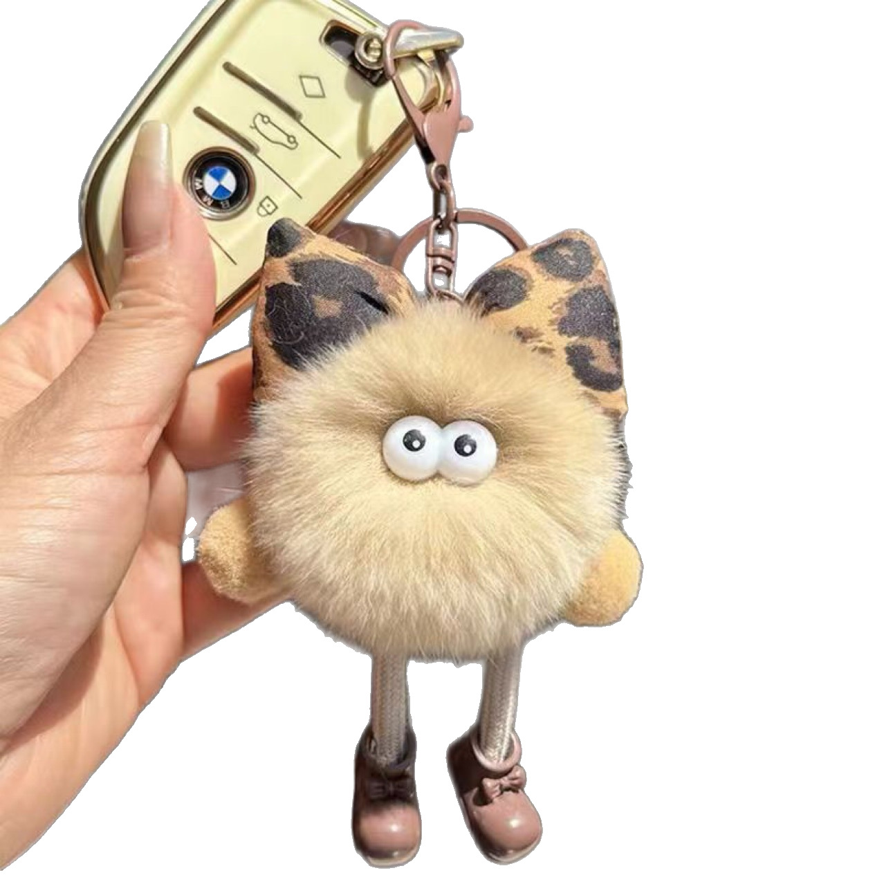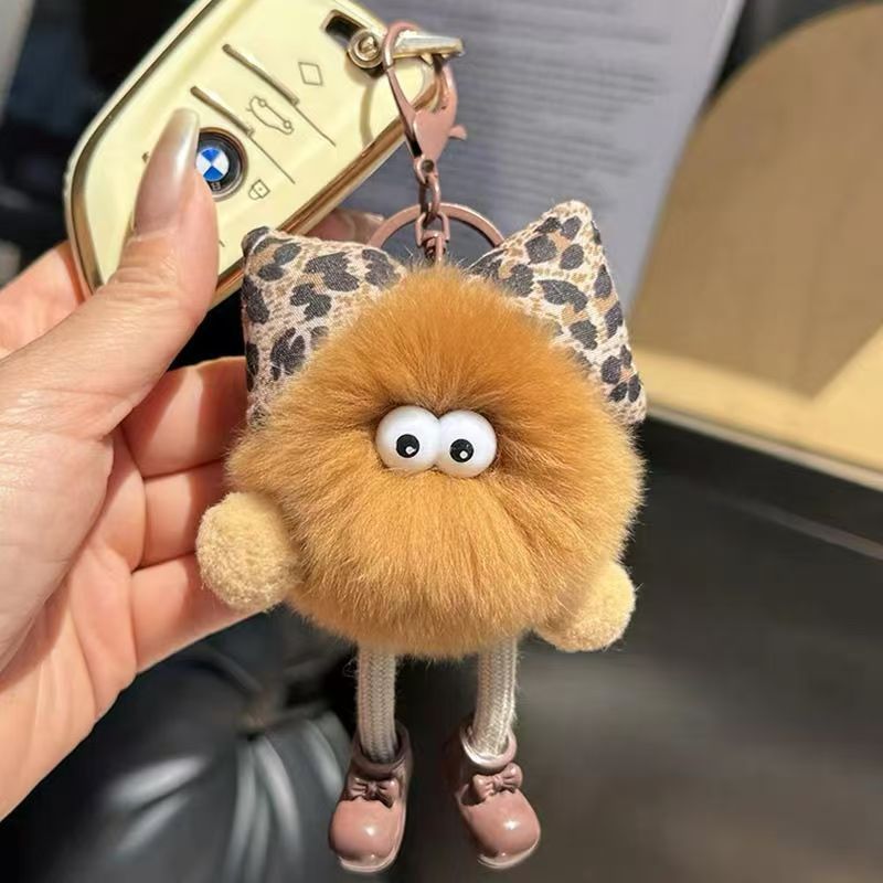 獭兔毛豹纹蝴蝶结小煤球ins网红可爱包吊坠挂饰挂件怪兽钥匙扣