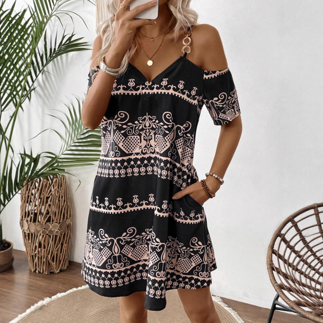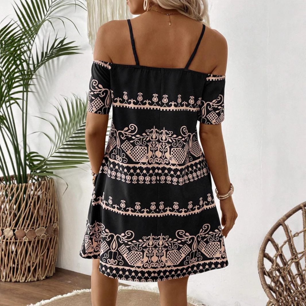 2025速卖通亚马逊欧美跨境新款女士印花 V 领性感时尚吊袋连衣裙