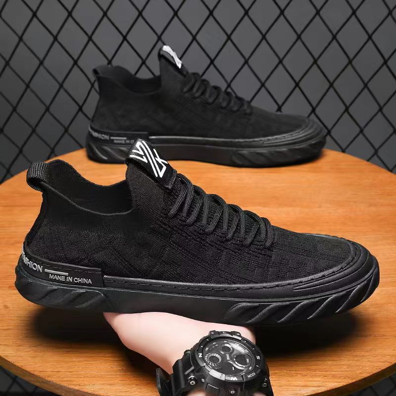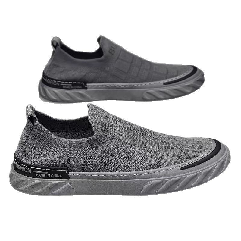 春季新款懒人套脚休闲一脚蹬飞织网面透气时尚百搭韩版潮男弹力鞋