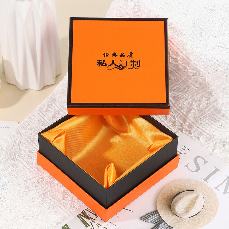 天地盖包装盒化妆品珠宝浴巾套装橙色礼盒批发工艺品礼物商务手工