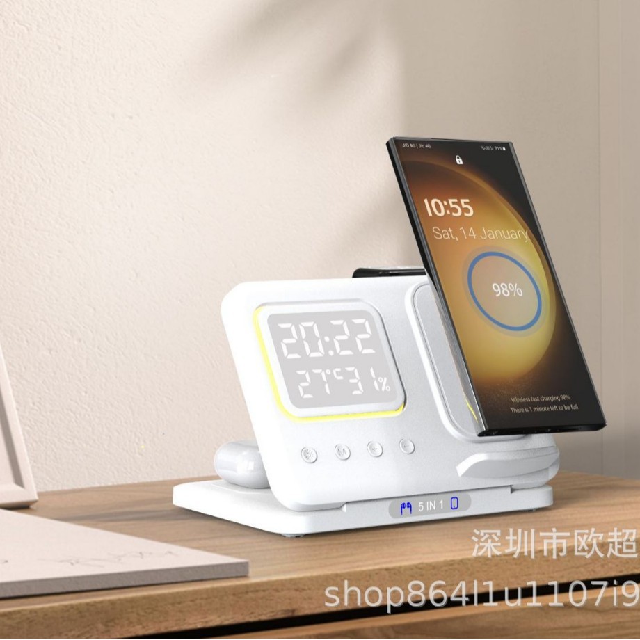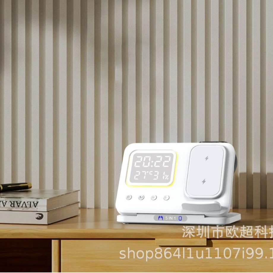 时钟夜灯无线快充适用三星苹果手机桌面充电支架智能数显磁吸
