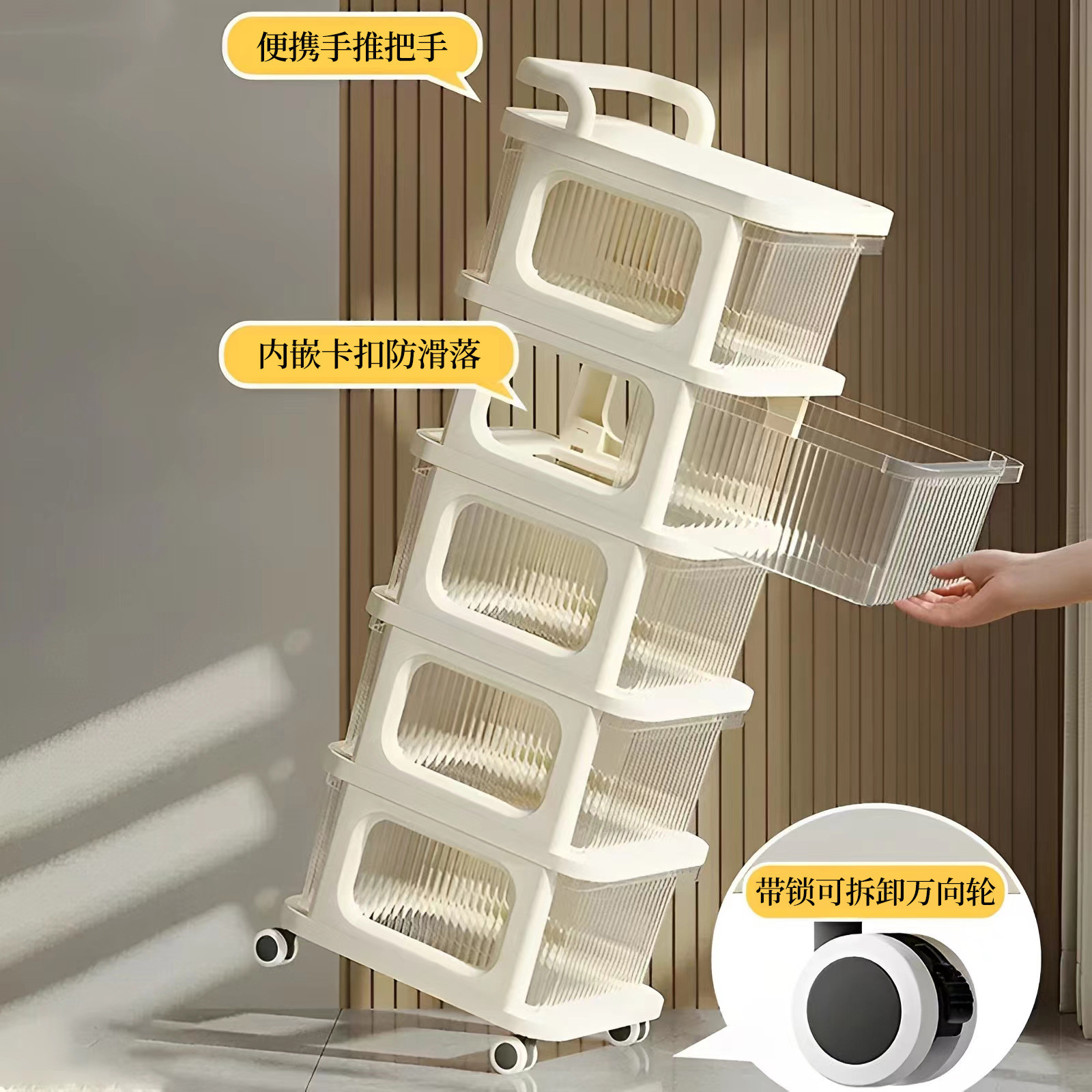 家用抽屉式收纳柜零食置物架小推车落地多层移动儿童玩具储物柜子