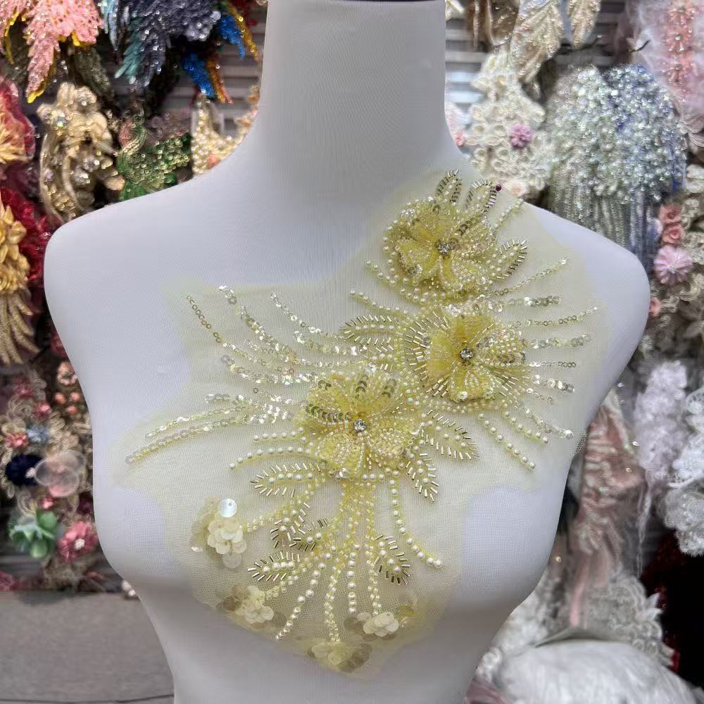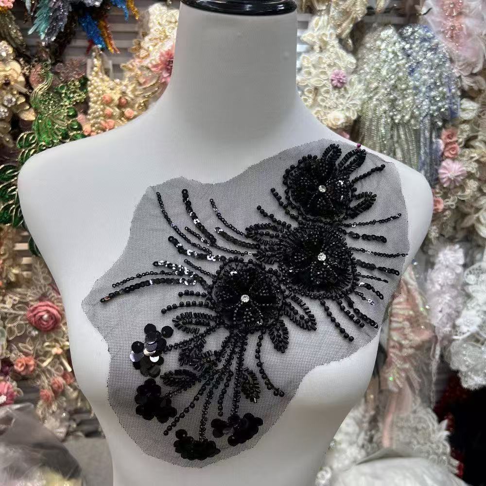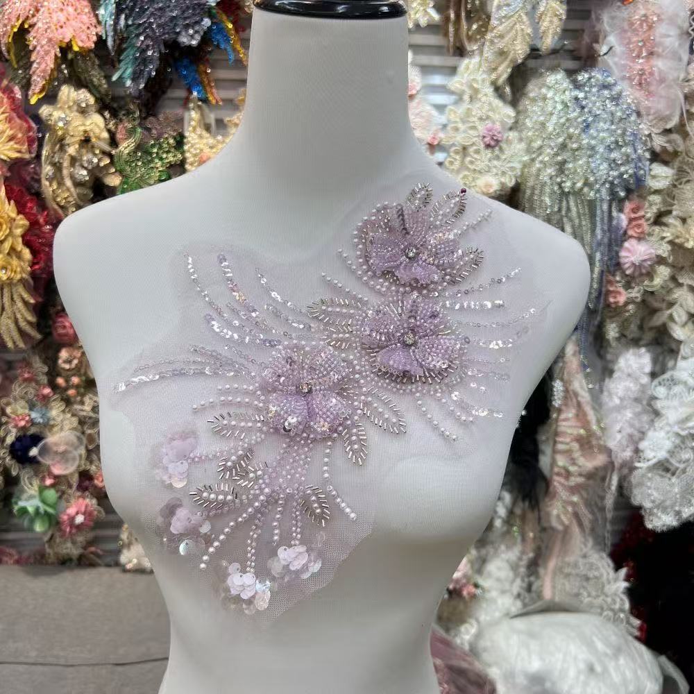 珠片刺绣蕾丝花片外贸辅料婚纱礼服头巾平片跨境创意衣服贴花花边
