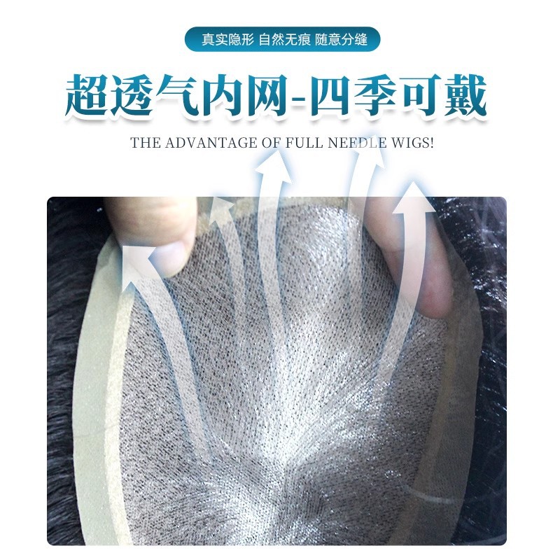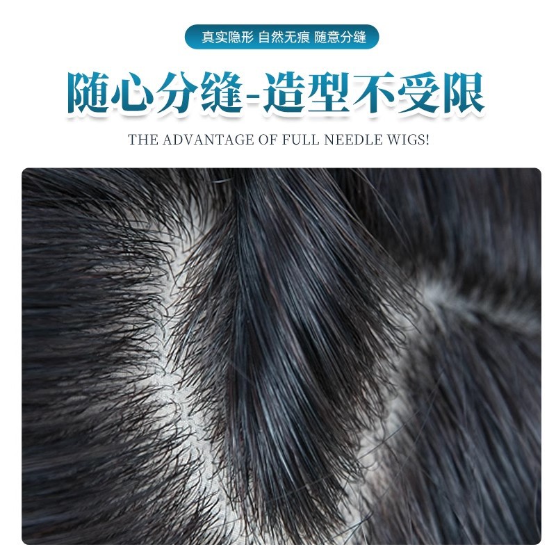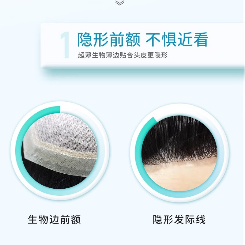 双递针男士补发块全手织厂家批发前额隐形遮头顶生物边真发补发片
