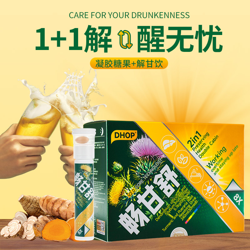 | 包装规格 | DHOP-畅甘舒铁皮石斛水飞蓟子凝胶糖果(无糖型)+姜黄葛根解甘饮(植物饮品)中英版 | 储存条件 | 常温 |