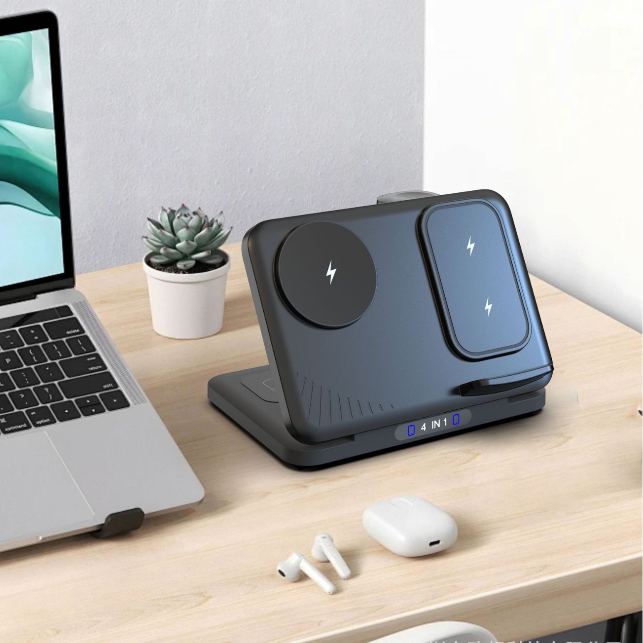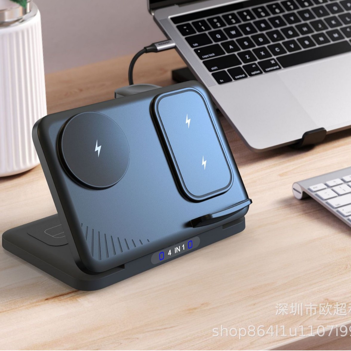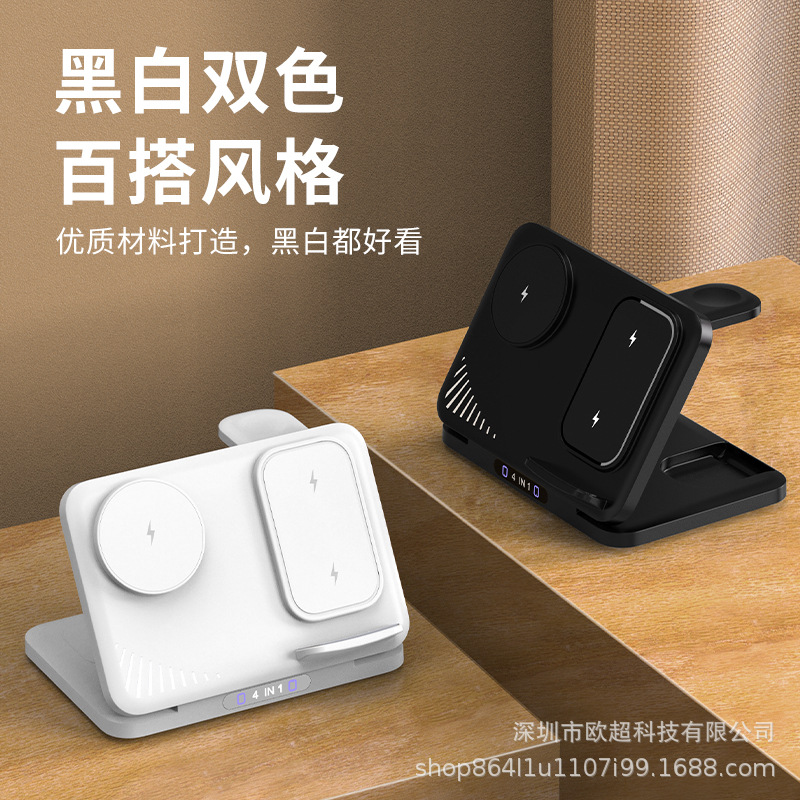 4 IN 1双手机15W快速无线充电器折叠支架适用三星苹果手机 手表