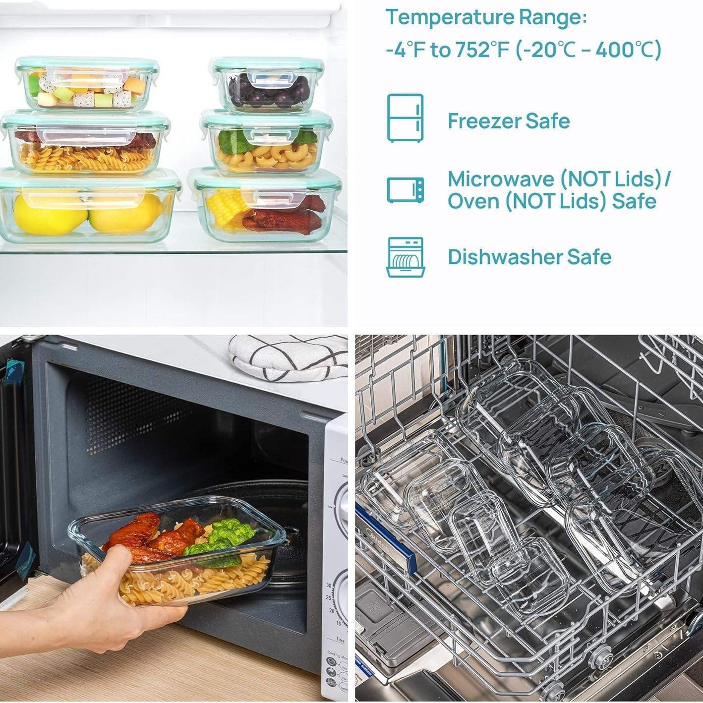 跨境食品级高硼硅长方形玻璃饭盒8件套保鲜套装可加热冷藏便当盒