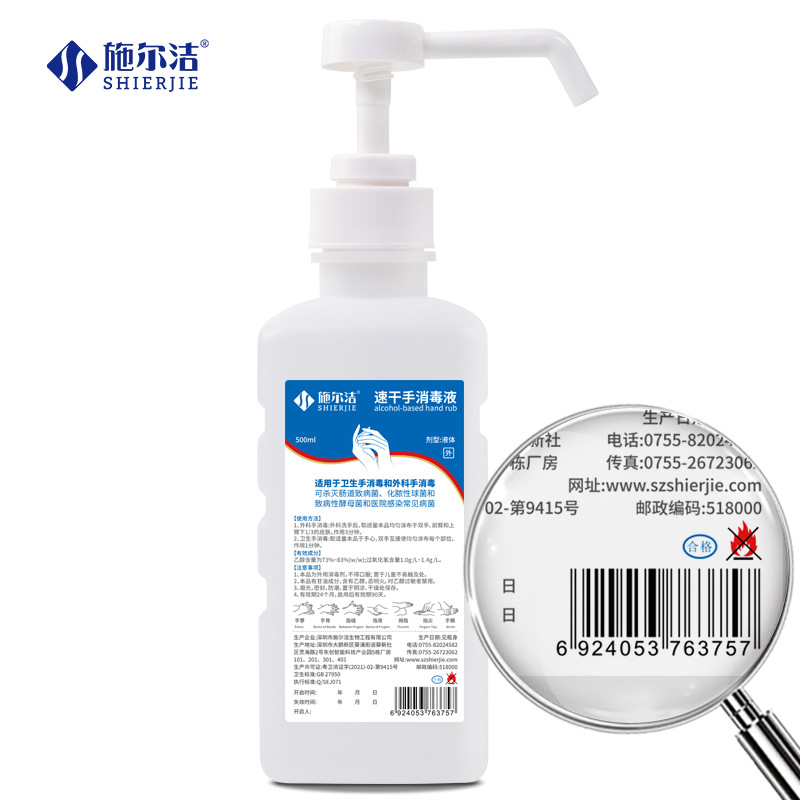 品牌 | 施尔洁 | | 货号 | 500ml速干手消毒液 |