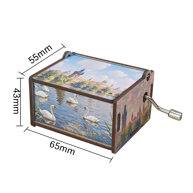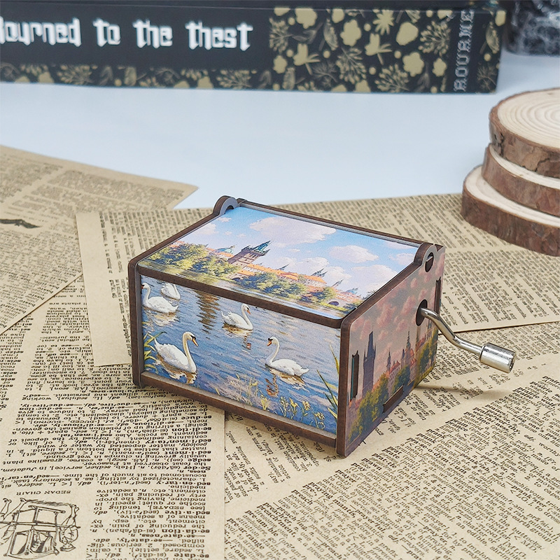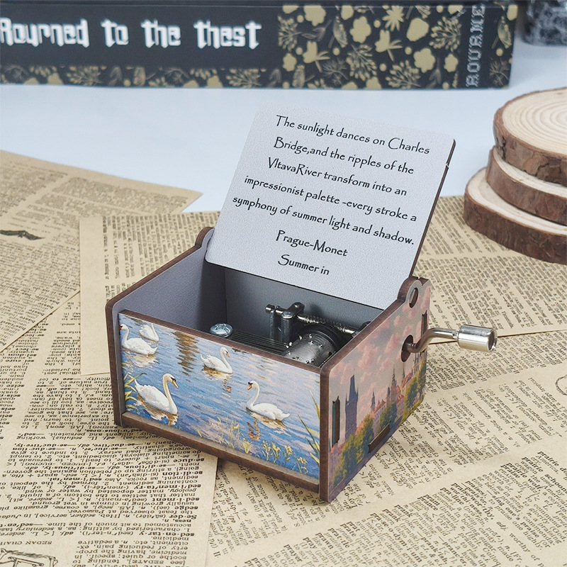 莫奈夏日布拉格手摇八音盒木质家居摆件创意立体音乐盒儿童礼物