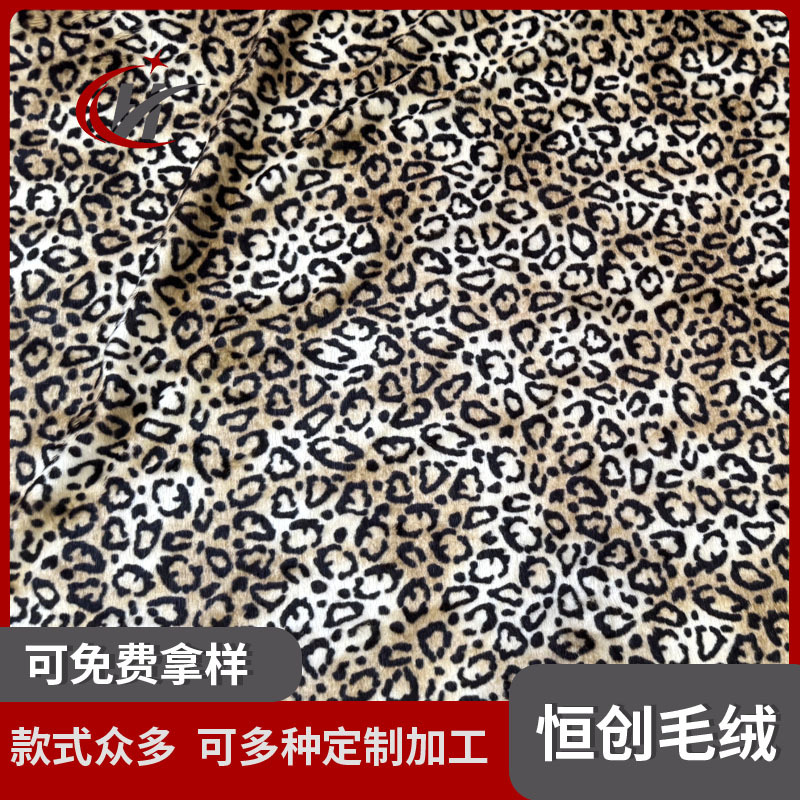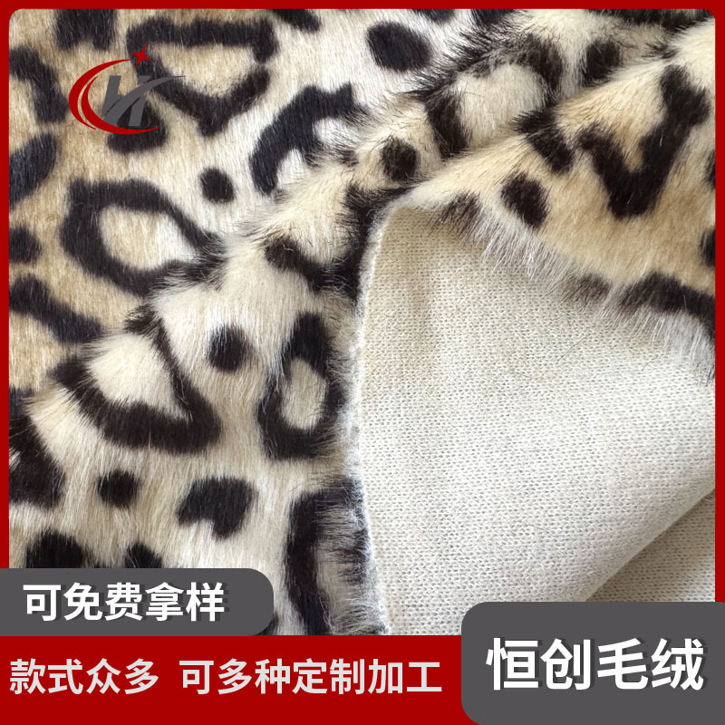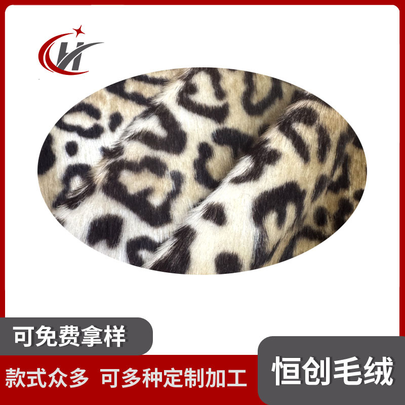 厂家定制豹纹印花毛皮 绒面全晴大毛皮 时尚女装服饰面料批发