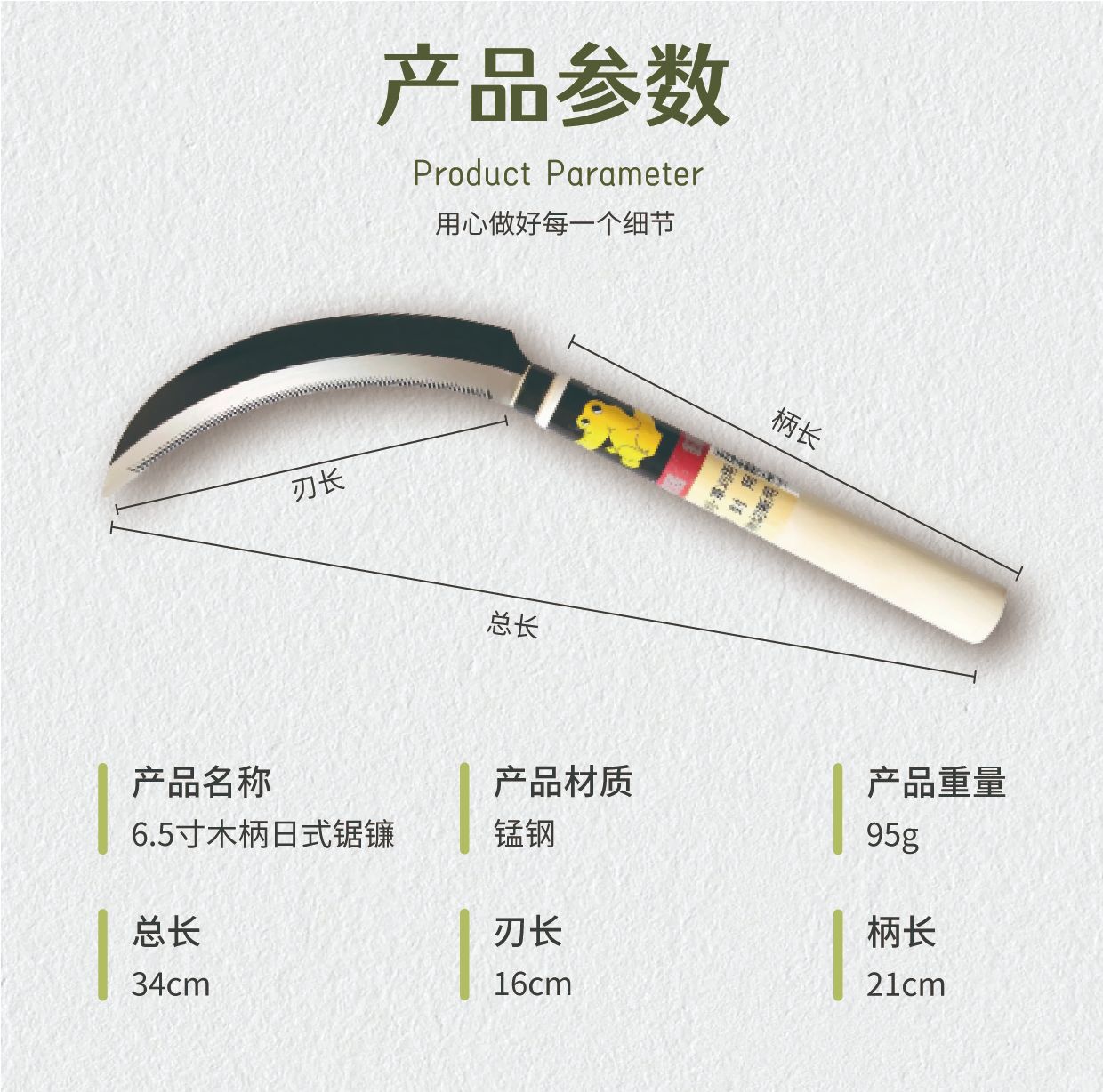 日式镰刀6.5寸锰钢农用弯刀户外割草水稻锯锯齿便携锋利砍草