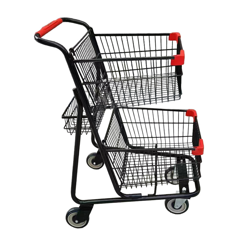 商场理货推车超市双篮购物车家用买菜双层成人手推车物业推车厂家