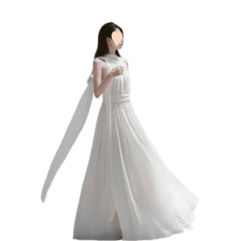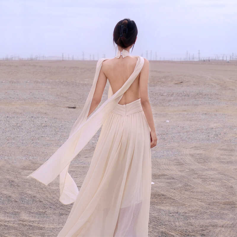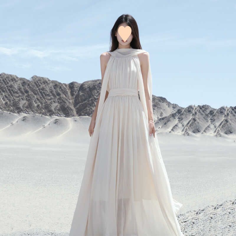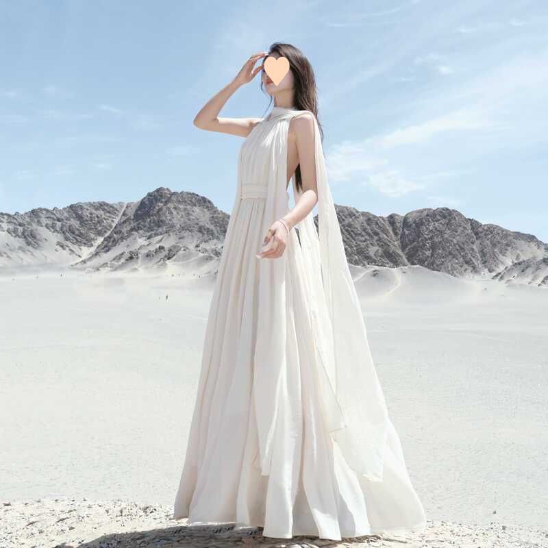 希腊女神连衣裙埃及沙漠旅游度假长裙仙女挂脖飘带沙滩裙绝美三亚