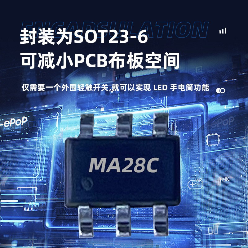 现货供应 MA28C单功能手电筒LED驱动ic 移动照明驱动芯片 SOT23-6