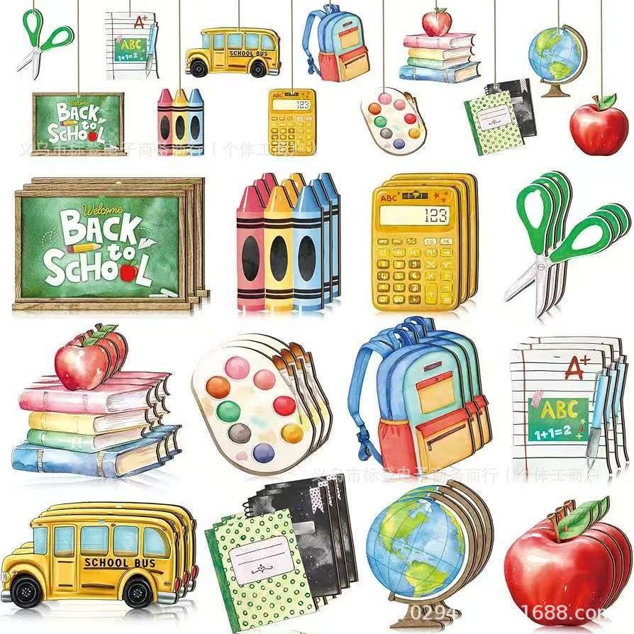 36件返校季木质装饰挂件树铅笔公告板计算器木质校园教室装饰布置