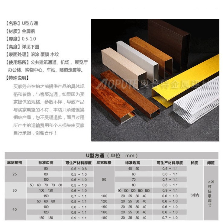 木纹铝方通吊顶材料自装办公室天花板长条装饰阳台铝方通格栅规格