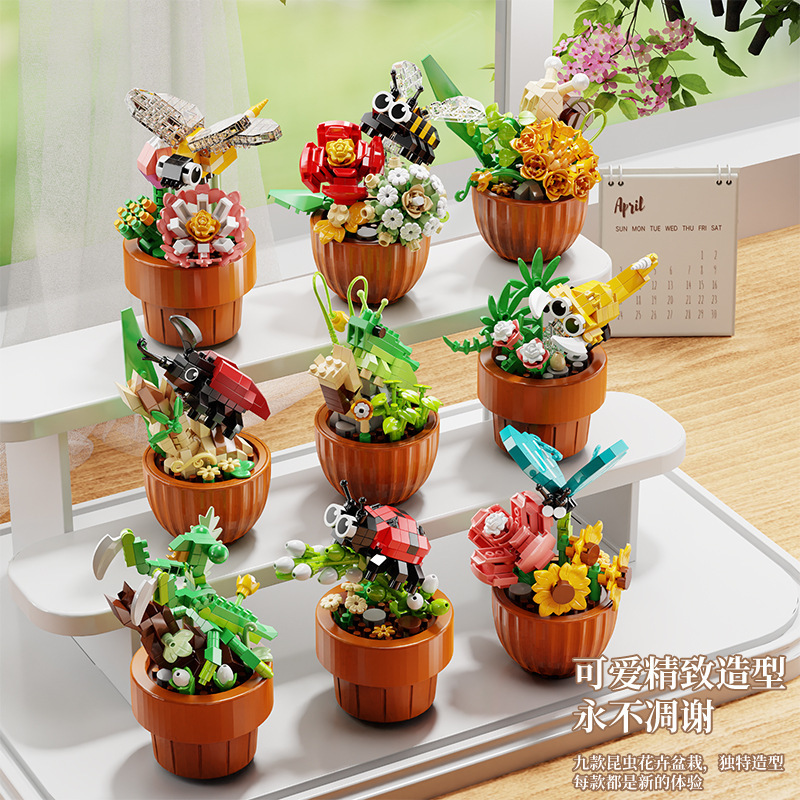 【批发代发】搞怪盆栽花积木可爱植物拼装积木兼容乐高摆件礼物