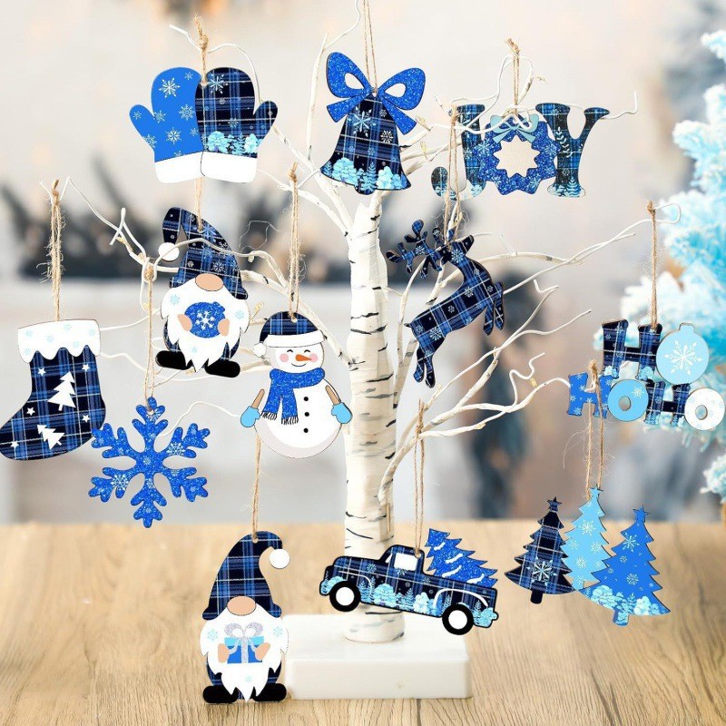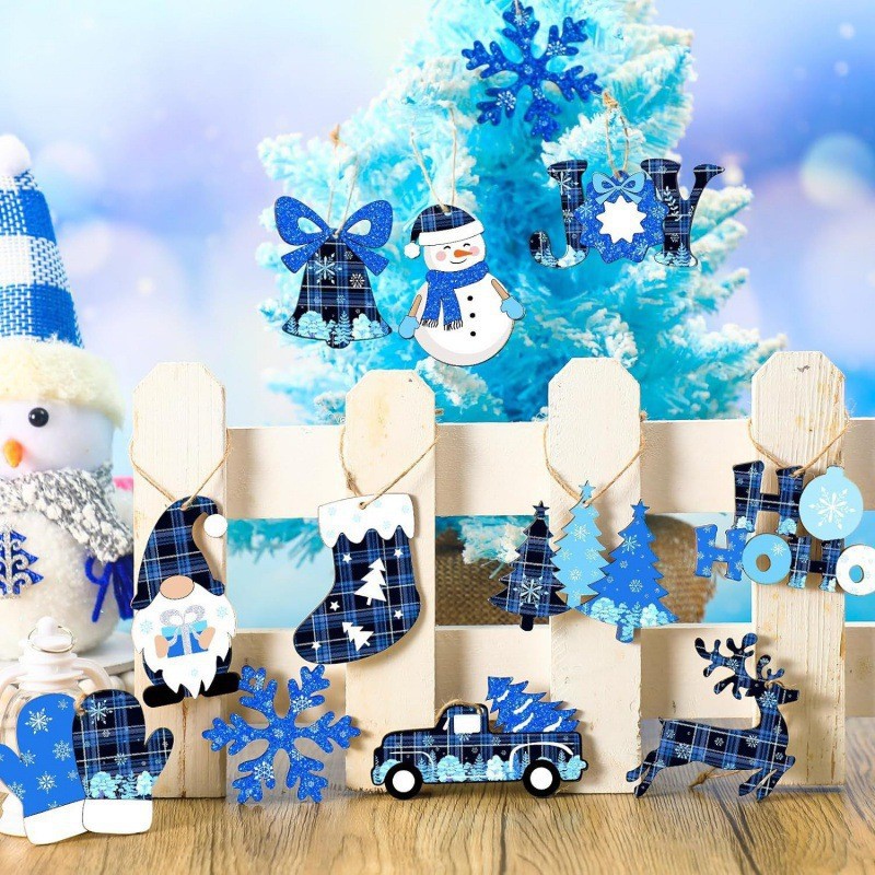 跨境圣诞木制装饰雪花小矮人圣诞树装饰标志带绳适用于圣诞节派对