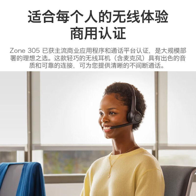 罗技Zone 305商用无线蓝牙耳机麦克风头戴式降噪麦克风 话务耳麦