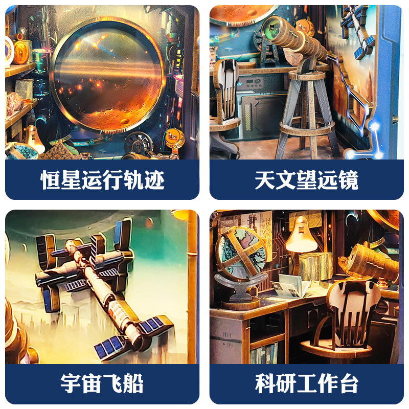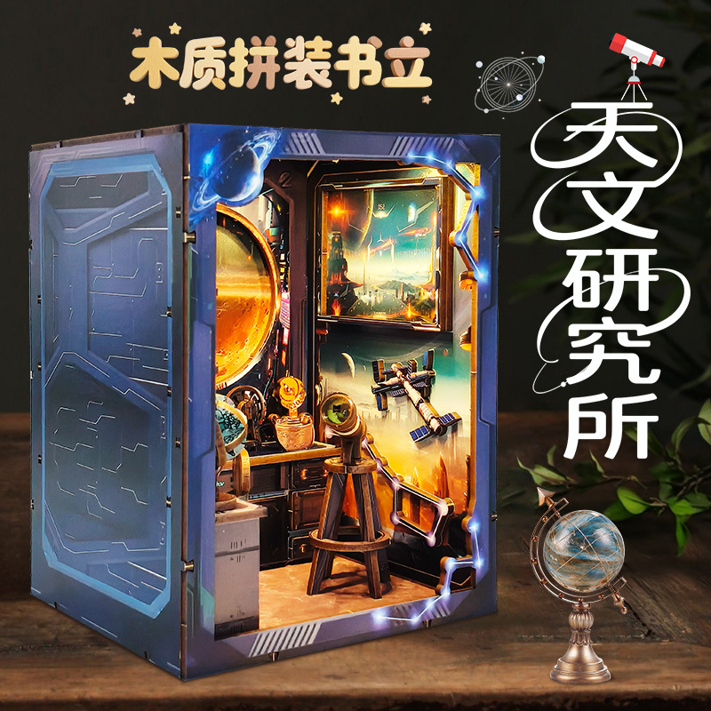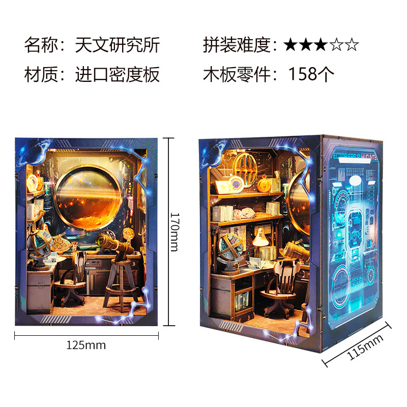 新品天文研究院DIY小屋书立手工拼图礼物3D立体木屋模型儿童玩具