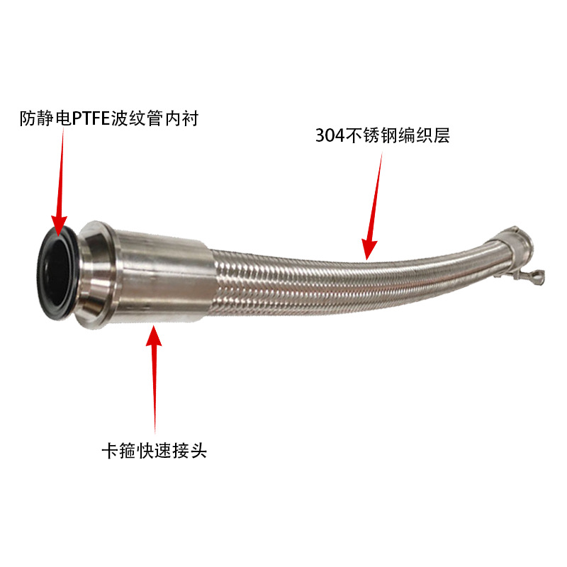 铁氟龙波纹编织软管防静电耐腐蚀耐高压快速卡盘卡箍接头厂家直发