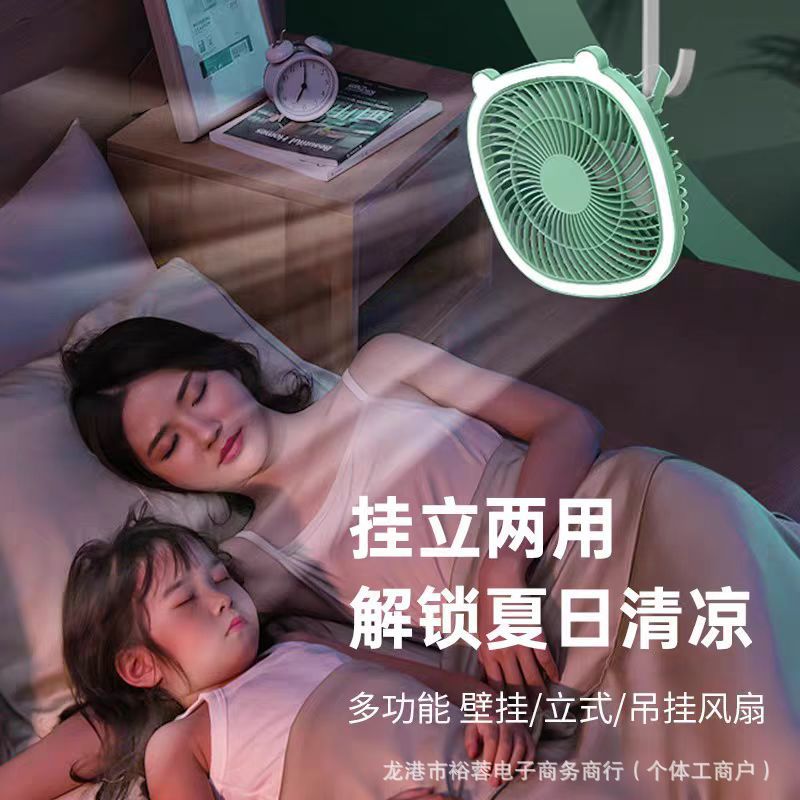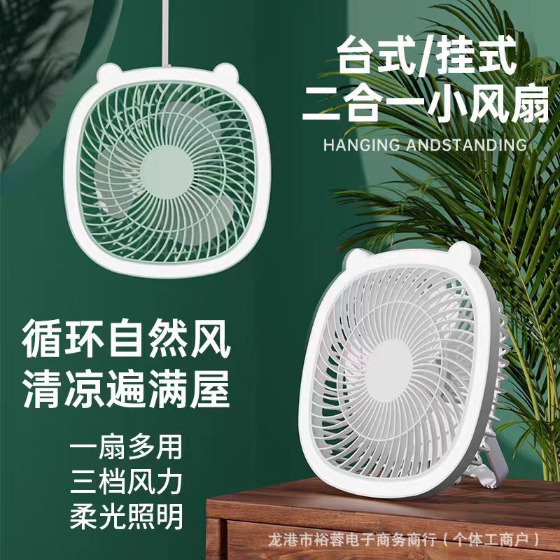 跨境新款创意迷你风扇卧室客厅夜灯家用办公室户外露营风便携户外