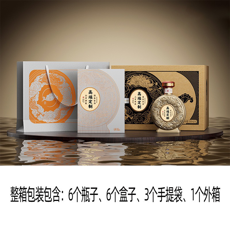 规格型号单瓶500ml+酒盒+手提袋+外箱;金色