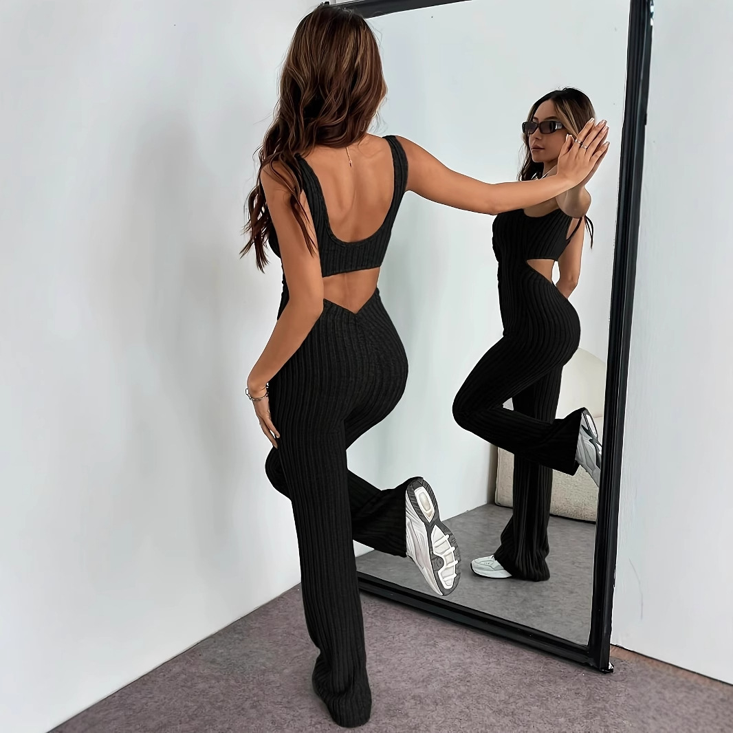 跨境外贸轻奢通勤连体裤露背剪裁高腰紧身连体衣解锁欧美性感穿搭