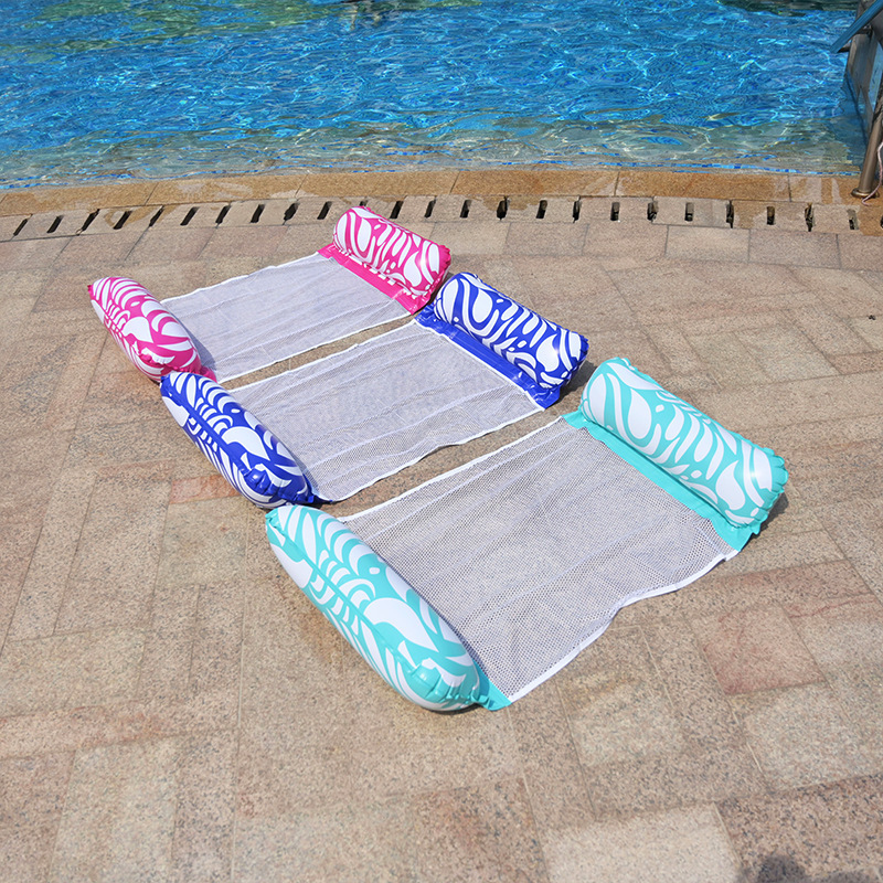 热卖充气花纹网面吊床 可折叠两管浮排 水上游乐躺椅浮床厂家批发