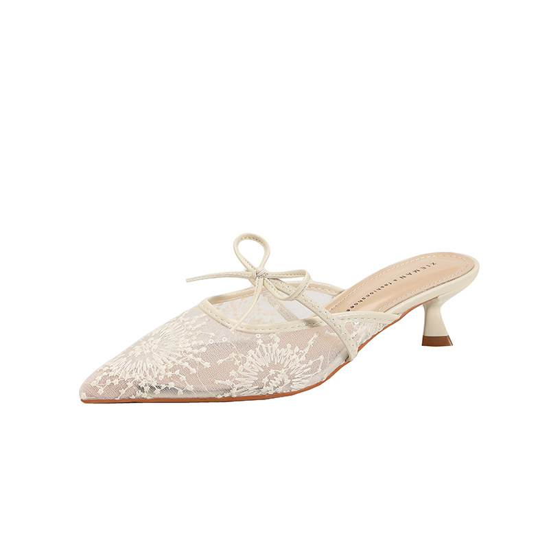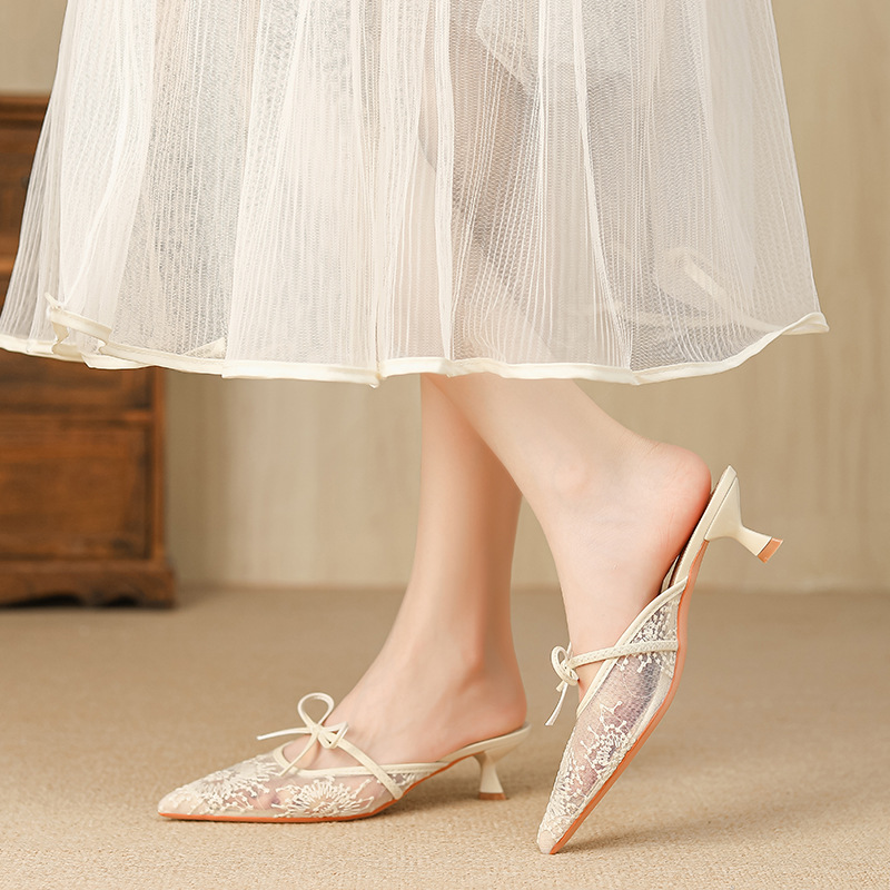 千履汇 田园风文艺范网纱透气可外穿包头拖鞋夏季新款蝴蝶结凉鞋