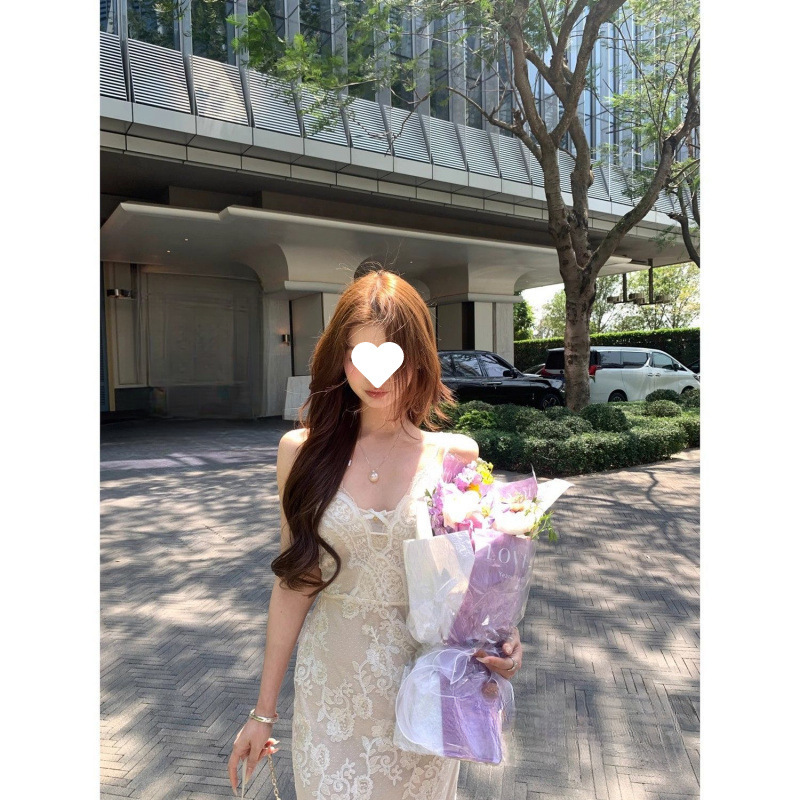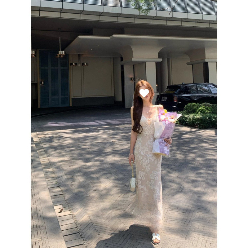 性感修身夏季新款立体蕾丝刺绣玫瑰包臀度假吊带长裙女