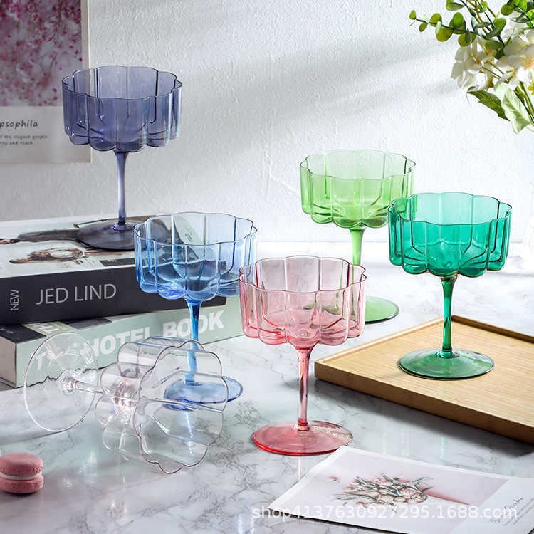欧式水晶玻璃高脚香槟杯创意花瓣酒杯高颜值葡萄酒杯洋酒杯子批发