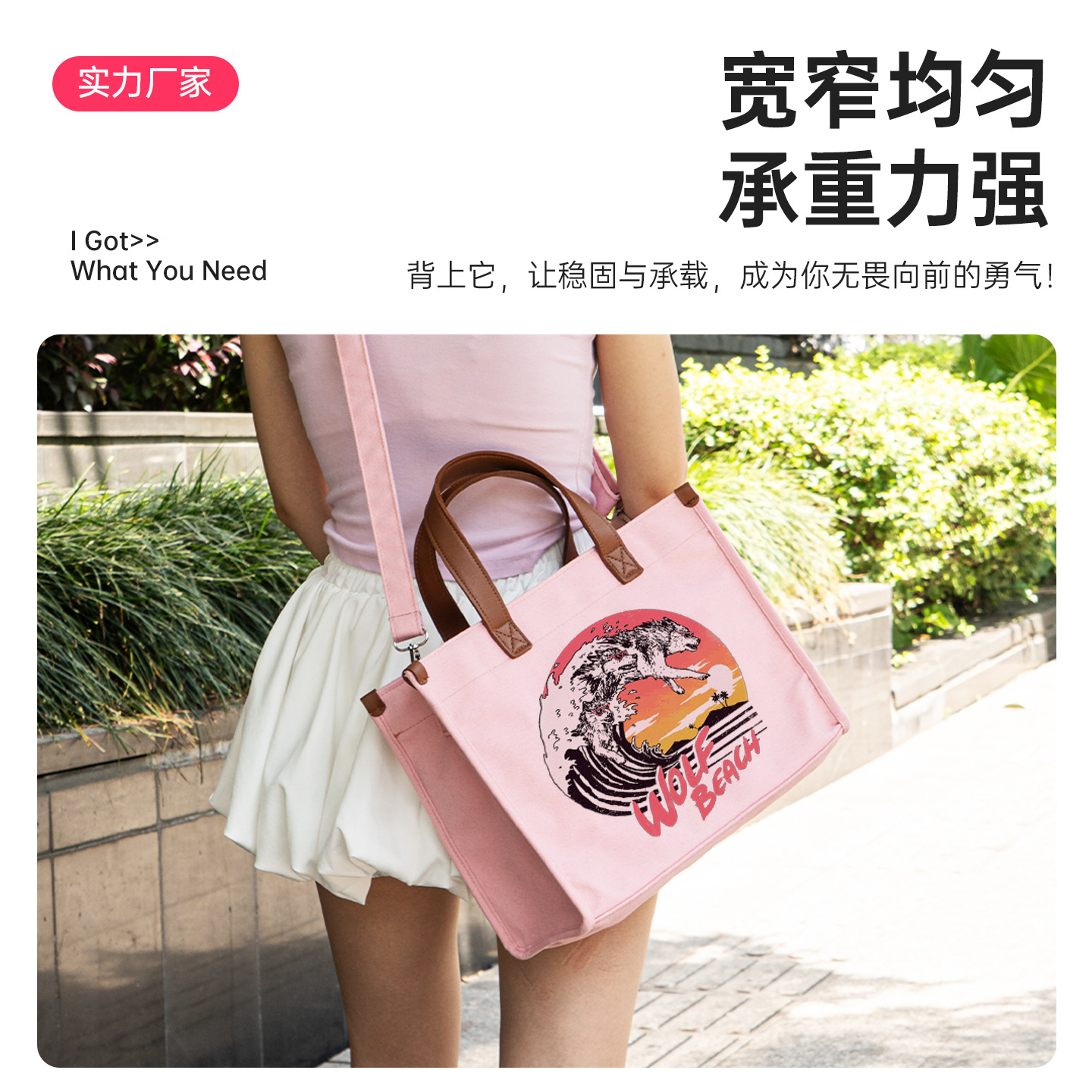 工厂供应斜挎帆布小方包手提托特包学院风休闲加印logo2025新款