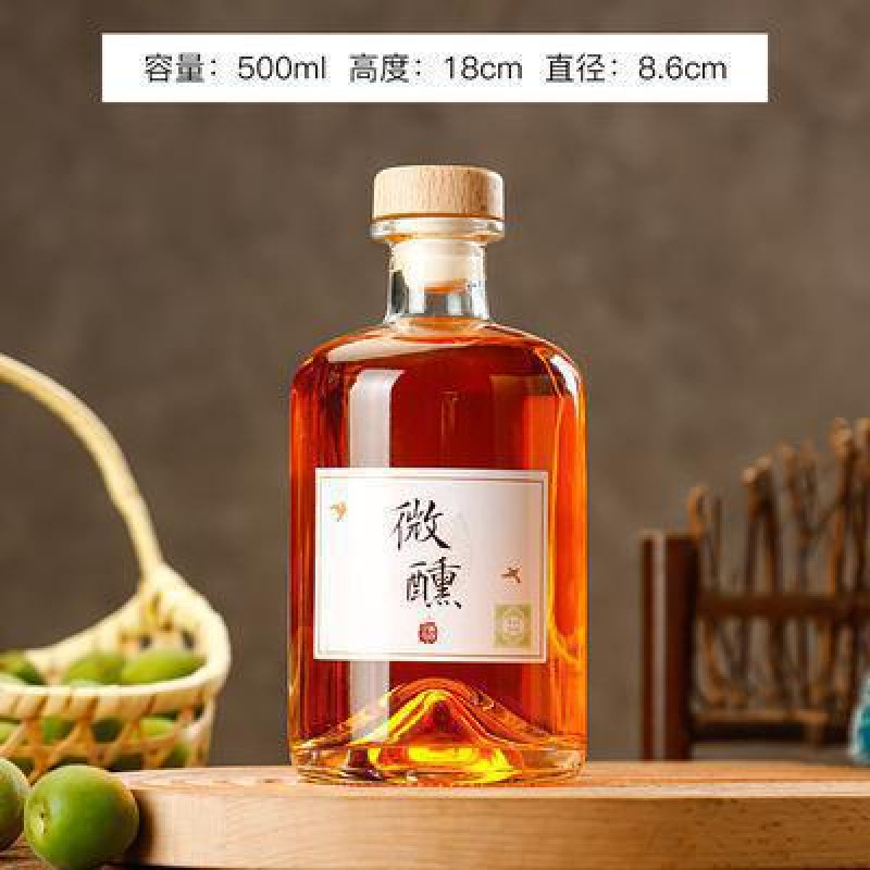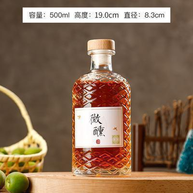 家酿青梅酒储存密封瓶晶白玻璃瓶高档l烈酒瓶果醋瓶木塞红酒瓶