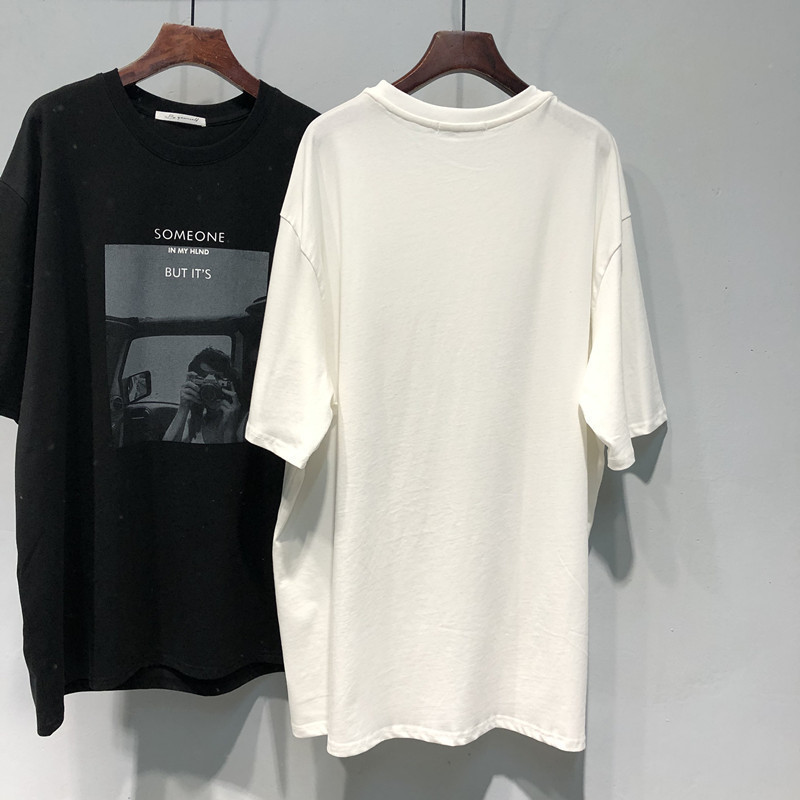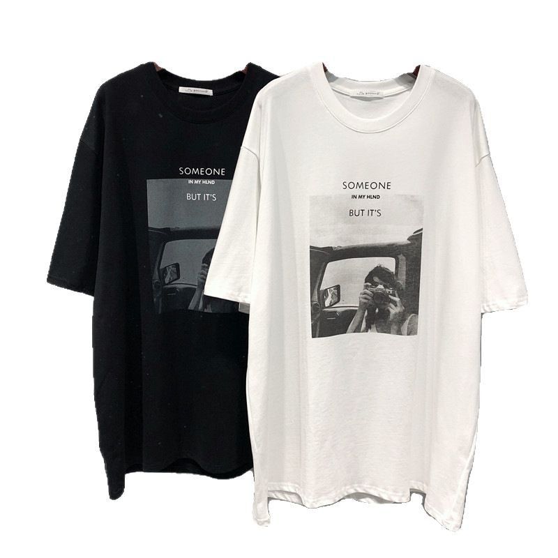 2025春夏韩国ulzzang新款韩范美女人物图案中长款宽松短袖T恤女潮