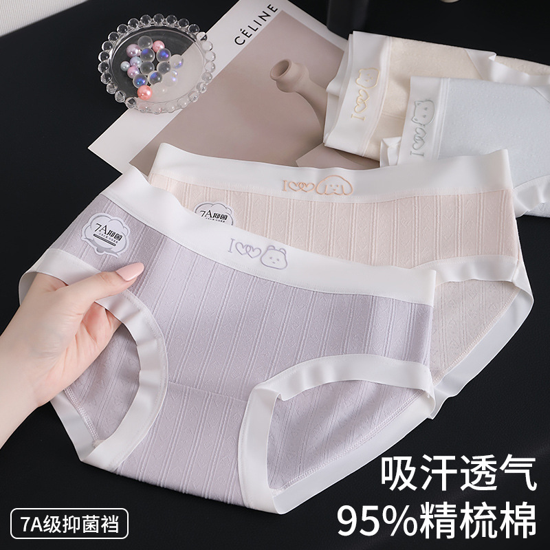 7A透气新款加长底裆女士内裤亲肤柔软舒适无痕卡通中腰包臀三角裤