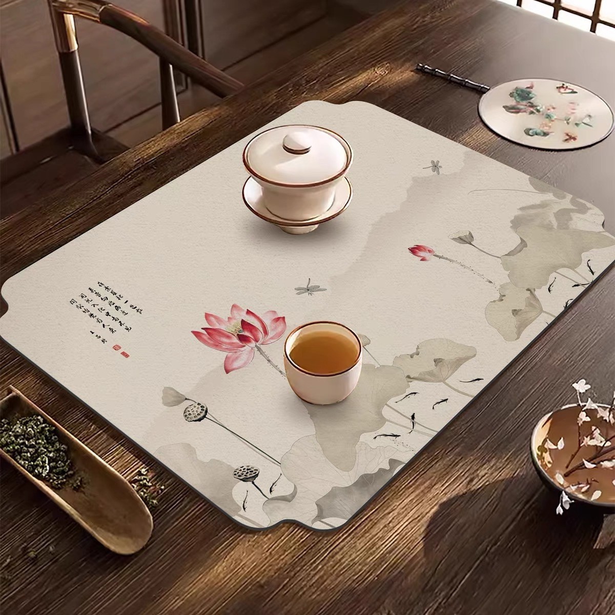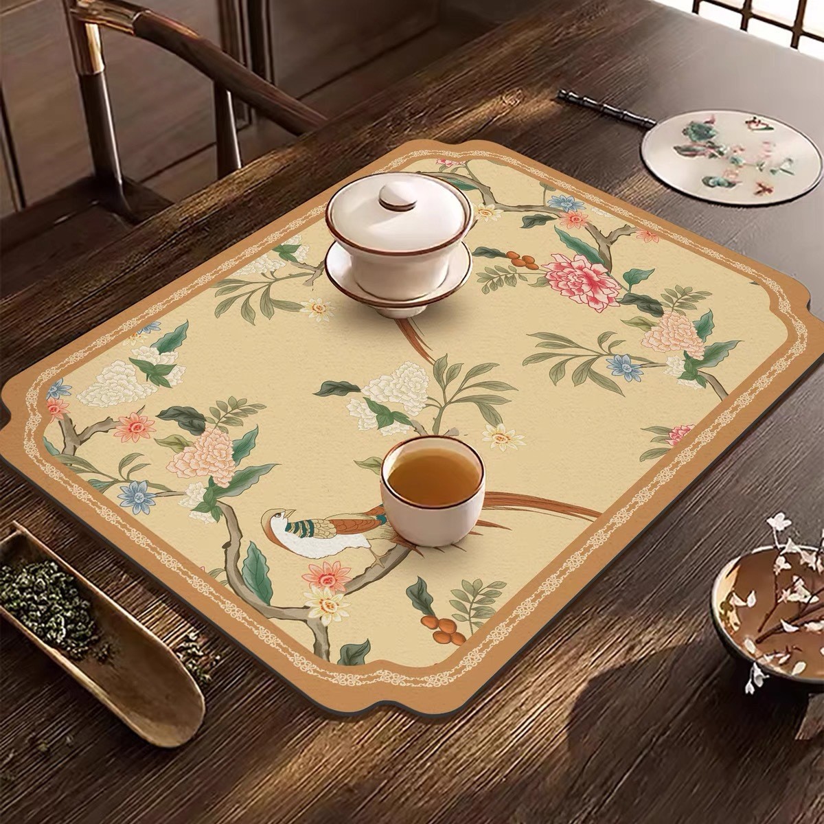 新中式餐垫防水桌垫茶席隔热硅藻泥垫子中式