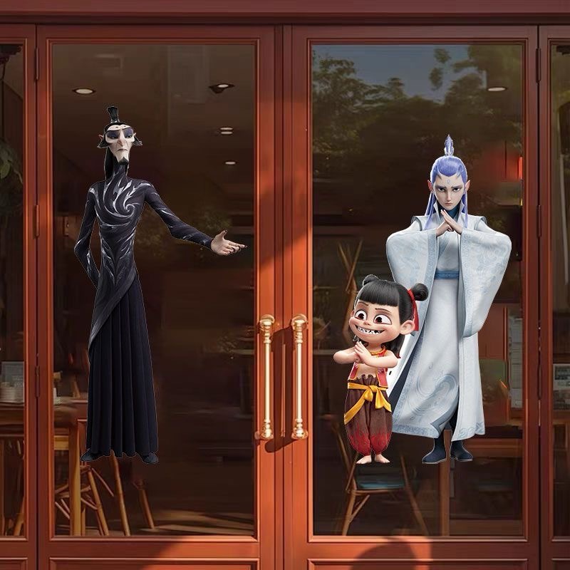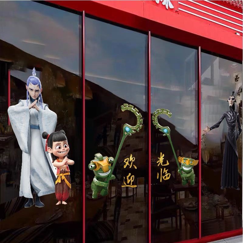 哪吒之魔童闹海玻璃无胶贴纸商场服装店铺橱窗氛围布置窗贴静电