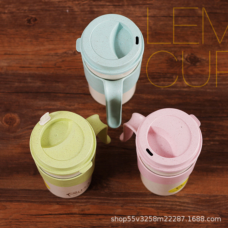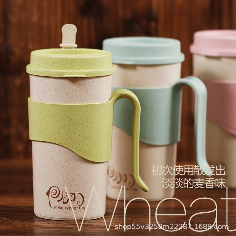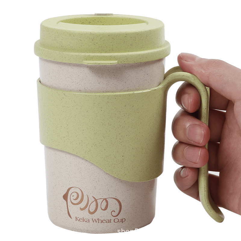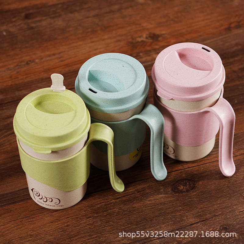 稻壳纤维创意水杯子办公喝水杯 带盖有把手家用杯马克杯
