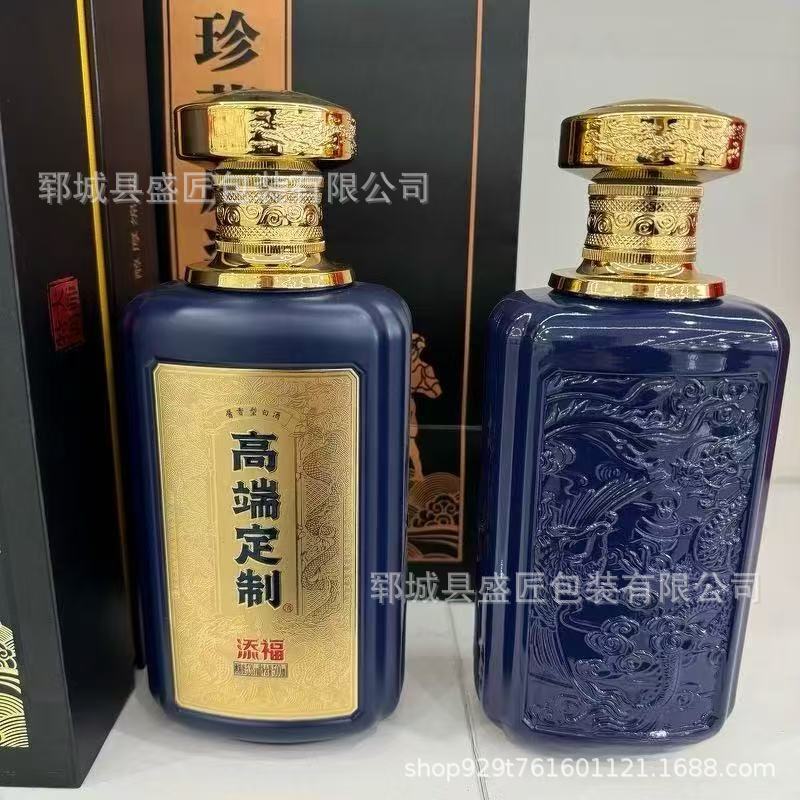 白酒瓶喷涂烤花四方密封储酒瓶家用喜酒瓶高端一斤装带包装玻璃瓶
