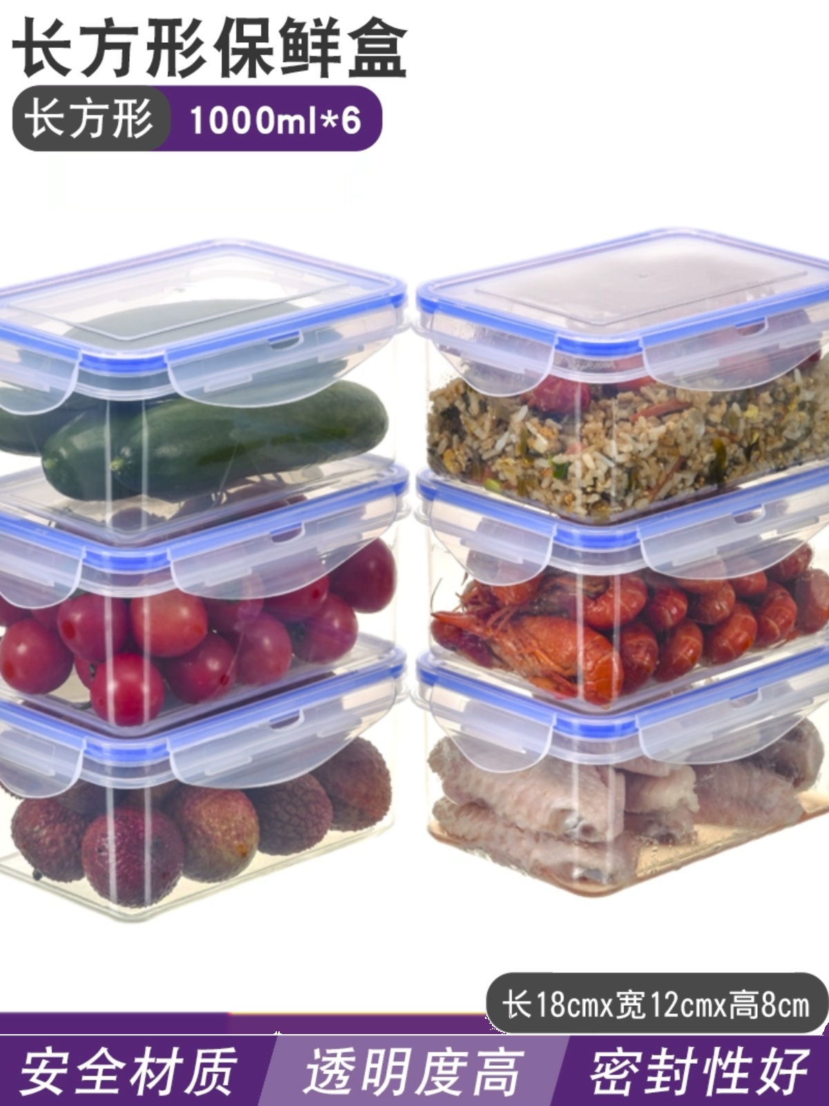 规格型号 | 650毫升透明保鲜盒六个装 | 规格型号 | 1000毫升透明两个装加厚款 |