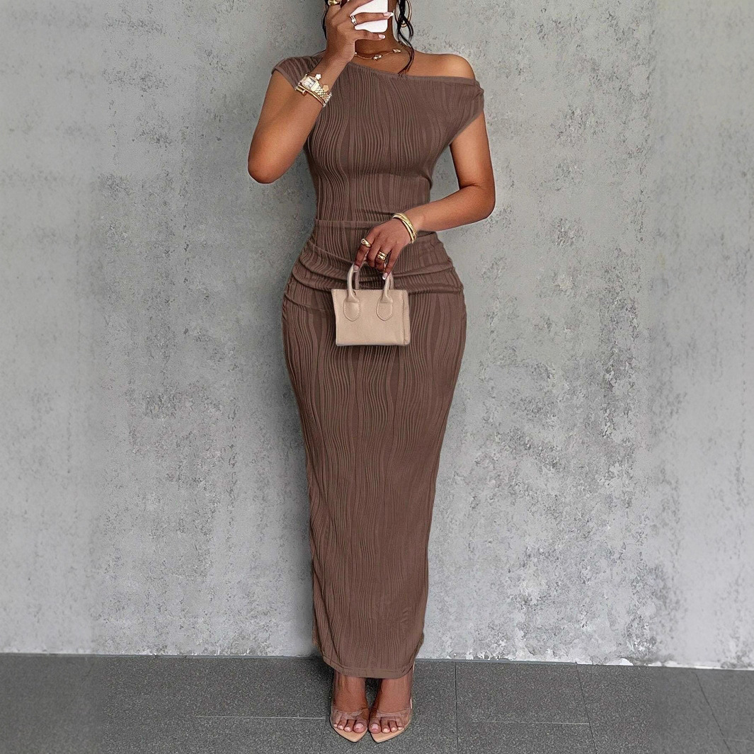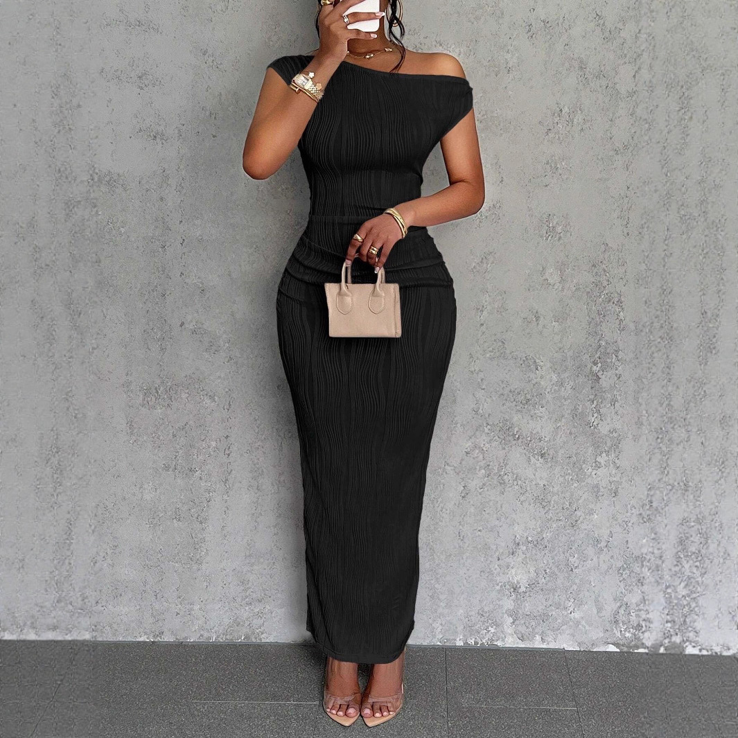 2025亚马逊独立站新款跨境 可爱时尚水波纹斜肩连衣裙现货