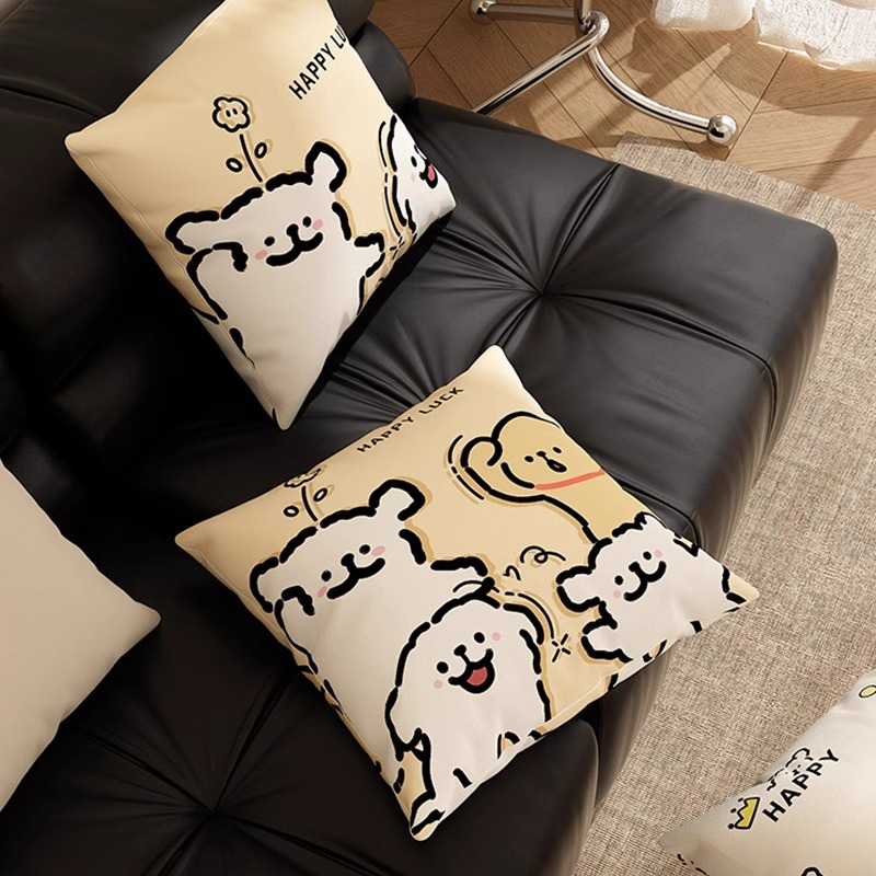 线条小狗抱枕沙发客厅卧室床头靠背方形靠枕可拆卸抱枕套含芯百搭
