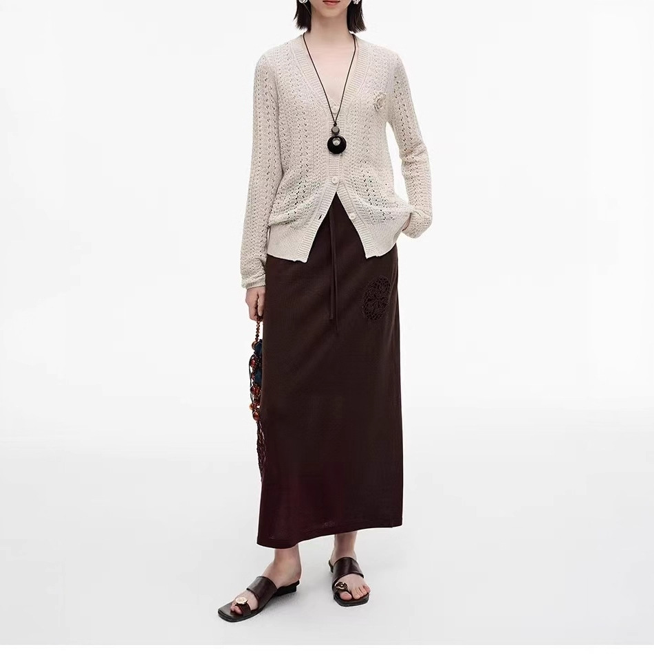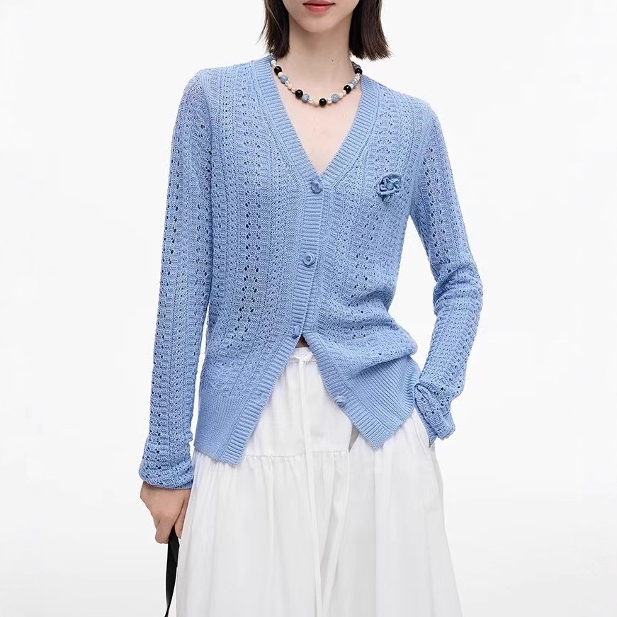 2025夏季绿绒蒿系列花朵胸针针织衫女2025秋新款v领针织衫