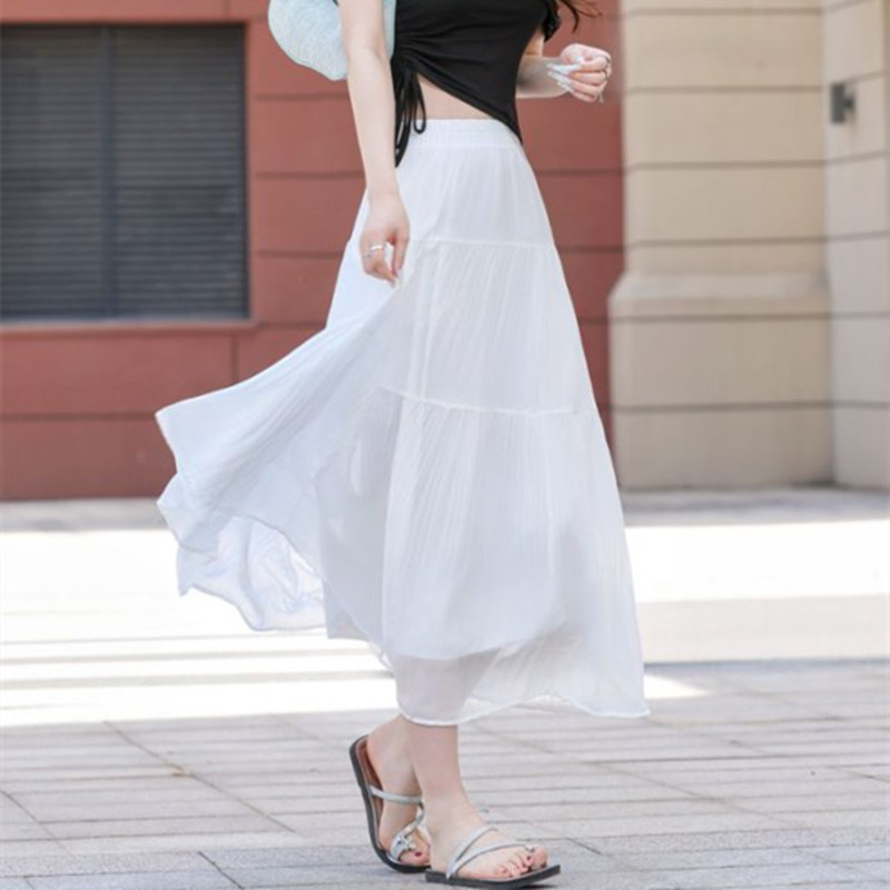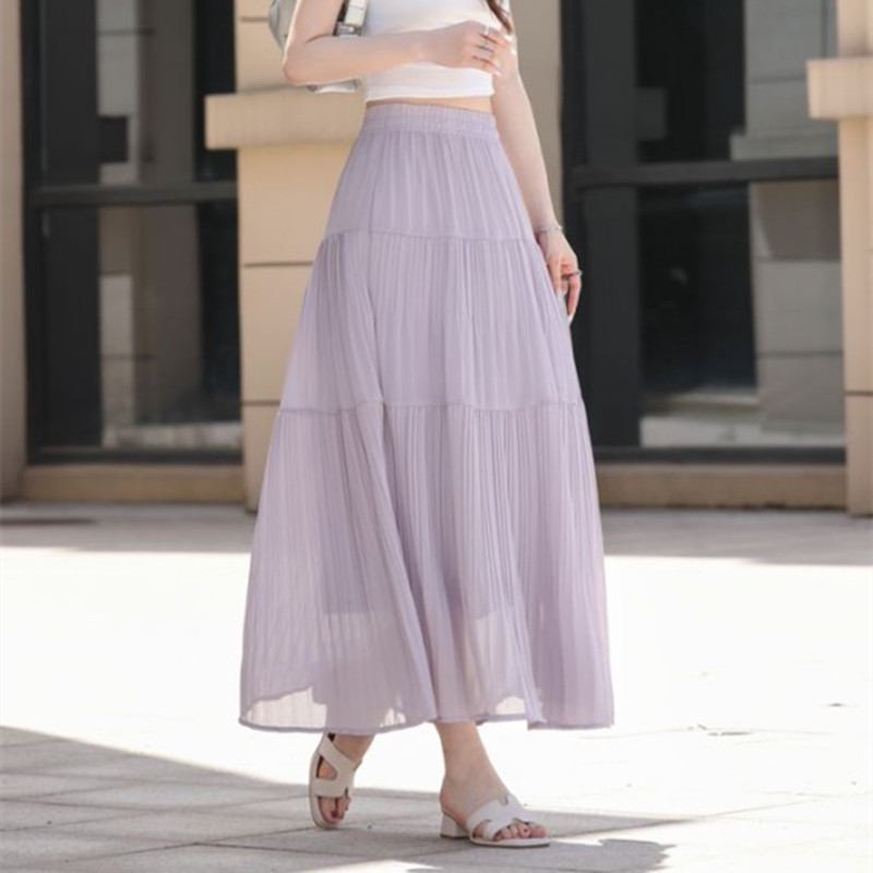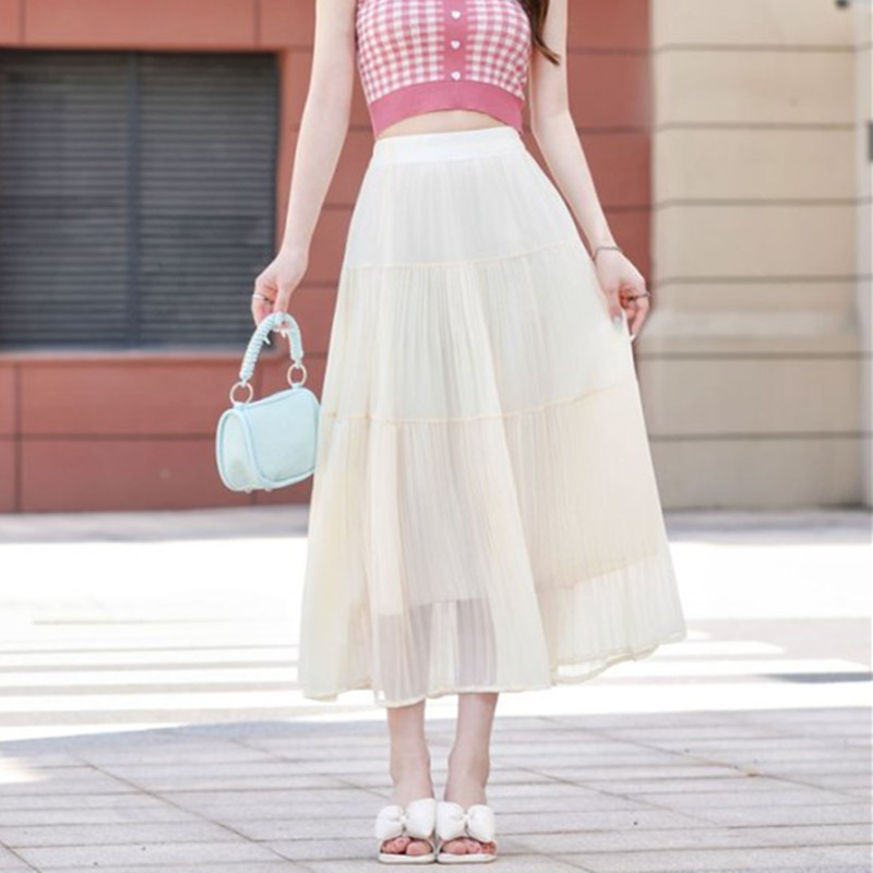 现货批发修身显瘦A字高腰半身裙法式百搭纯色褶皱长裙子款式价优