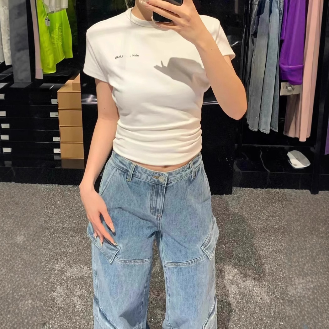 2025年女春夏新款修身t恤 叠褶短T高级叠褶收腰修身显瘦