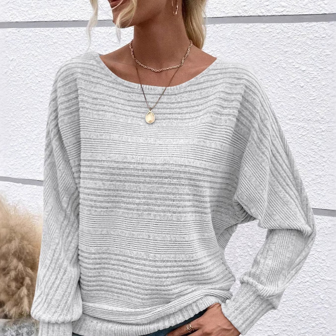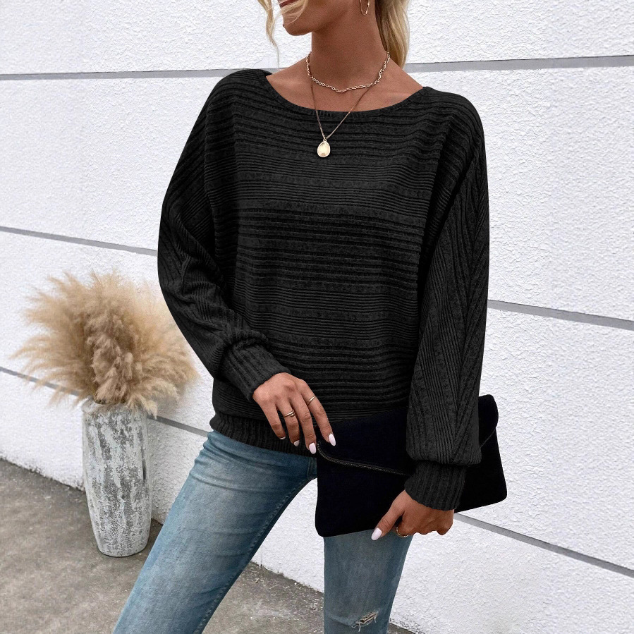 2025欧美跨境女装 亚马逊独立站秋冬新款坑条圆领蝙蝠袖上衣T恤女